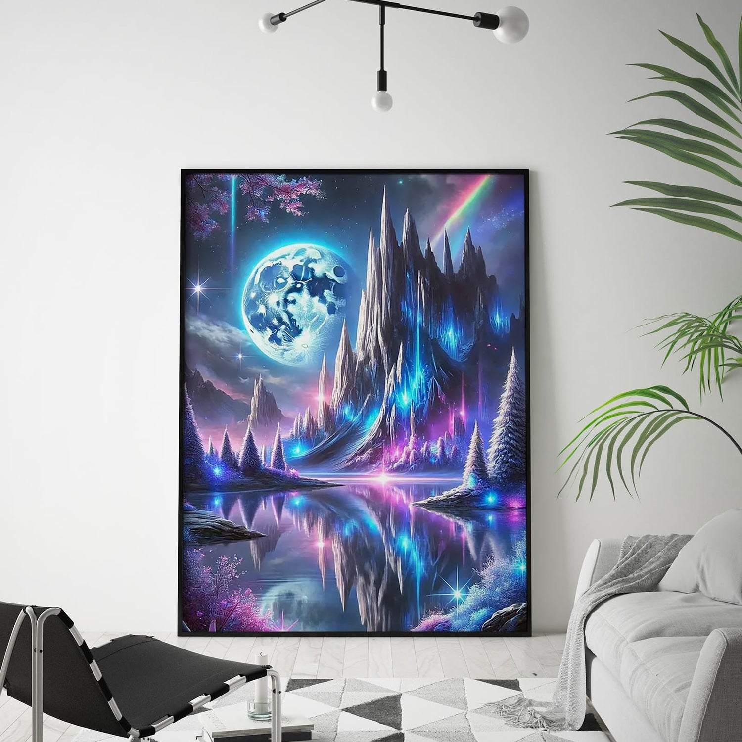 - 【High Quality Easy to Read】Our moon landscape diamond painting kits come with high definition canvases that watch numbers and letters effortless, you simply need to stick the diamonds on the corresponding numbers on the canvas.5d diamond painting kits for adults have a shiny luster,which can be maintained for a long time,the diamond is not easy to fall off,easy to complete