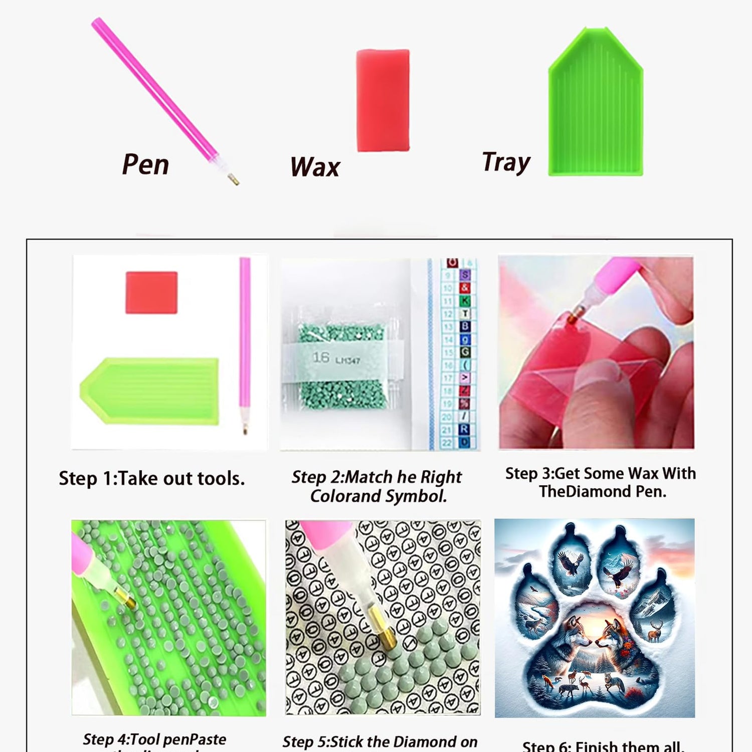 - 【Diamond Paintings Package Lncludes】Wolf diamond painting kits for adults tools in needed,with diamond dots kits for adults, you will get 1pc painting canvas, 1*diamond pen, 1*cube diamond tray, 1*red glue clay, 1*pen grip, 10*plastic ziplock bags for putting diamonds, enough colorful round diamonds,we provide an extra 20% diamonds that the adult winter wolf diamond painting kits can be completed smoothly