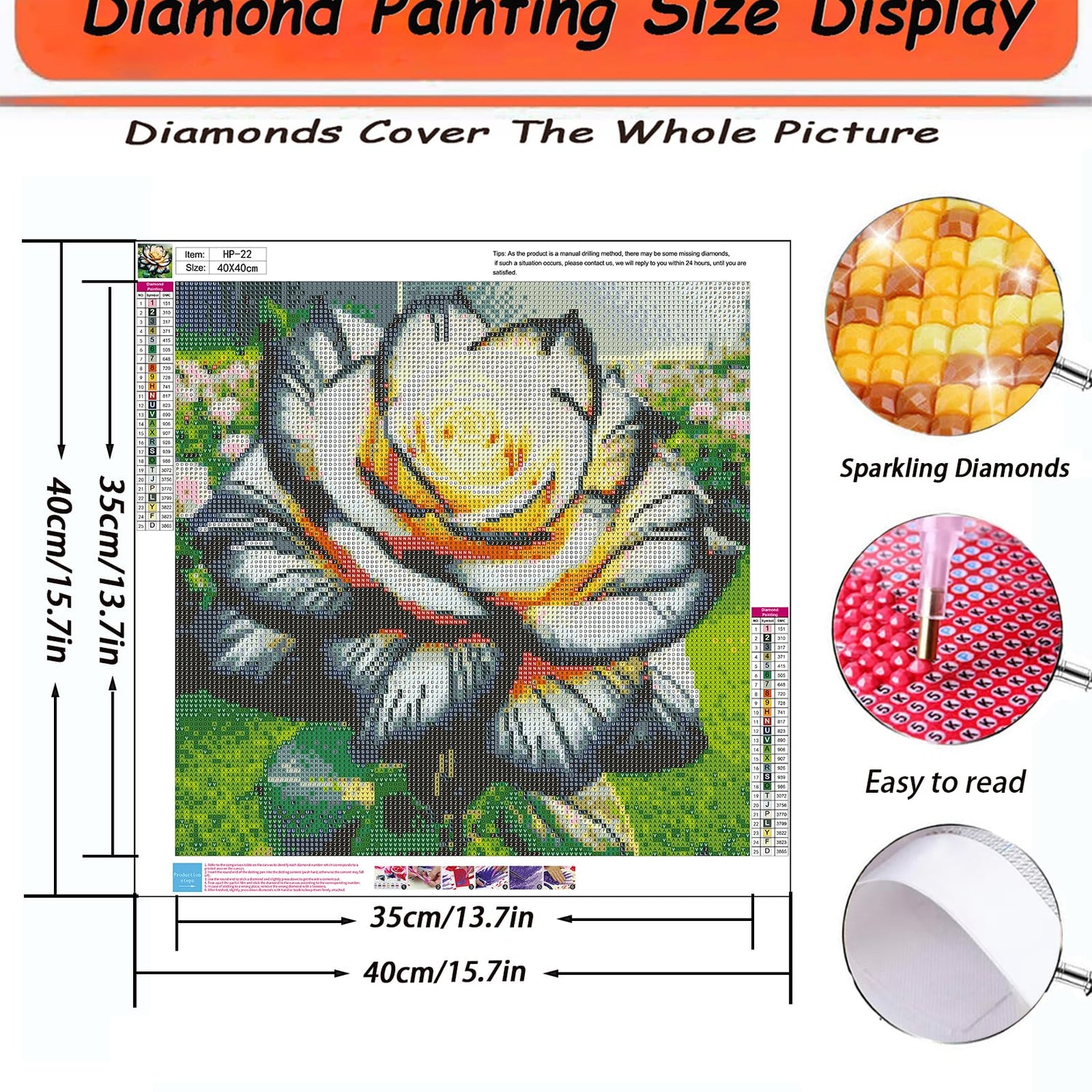 - 【Diamond Paintings Package Lncludes】 Yellow rose diamond painting kits for adults tools in needed,with diamond dots kits for adults, you will get 1pc painting canvas, 1*diamond pen, 1*cube diamond tray, 1*red glue clay, 1*pen grip, 10*plastic ziplock bags for putting diamonds, enough colorful round diamonds,we provide an extra 20% diamonds that the adult flower diamond painting kits can be completed smoothly