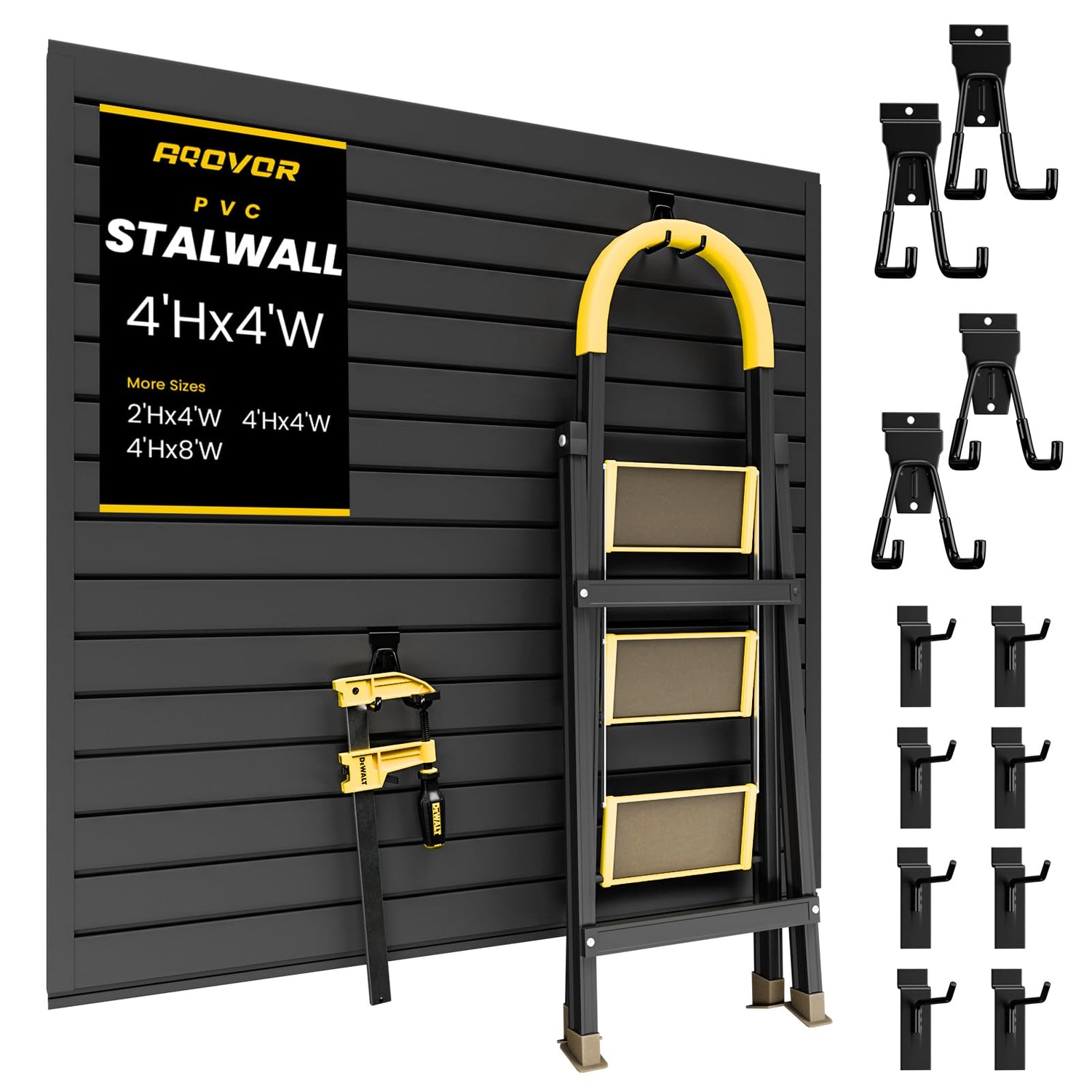 AQOVOR Slat Wall Paneling 4x4 FT, PVC Slat Wall Panels Heavy-Duty Garage Organization System with Hooks & Accessories, Slatwall Pegboard Suitable for Home、Garage、Shop Display & Organization (Black)