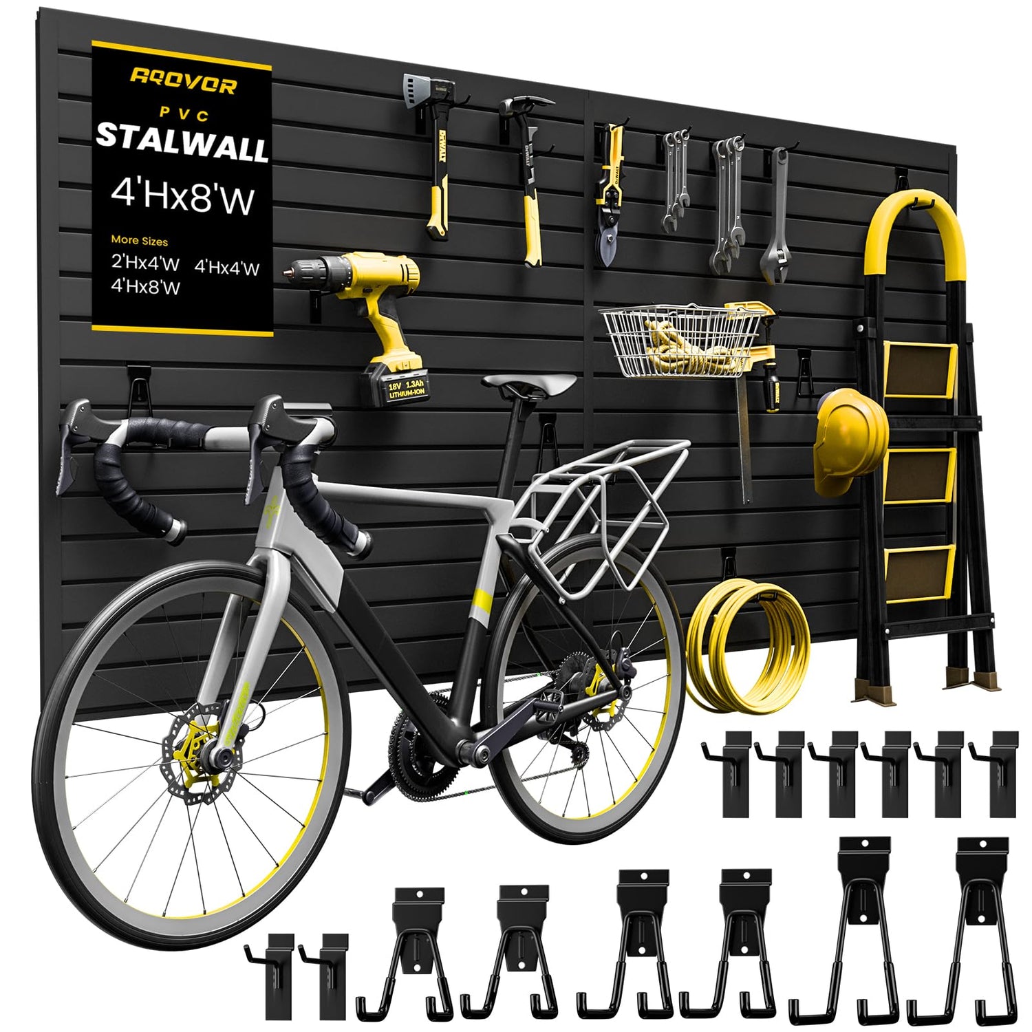 AQOVOR Slat Wall Paneling 4x8 FT, PVC Slat Wall Panels Heavy-Duty Garage Organization System with Hooks & Accessories, Slatwall Pegboard Suitable for Home、Garage、Shop Display & Organization (Black)