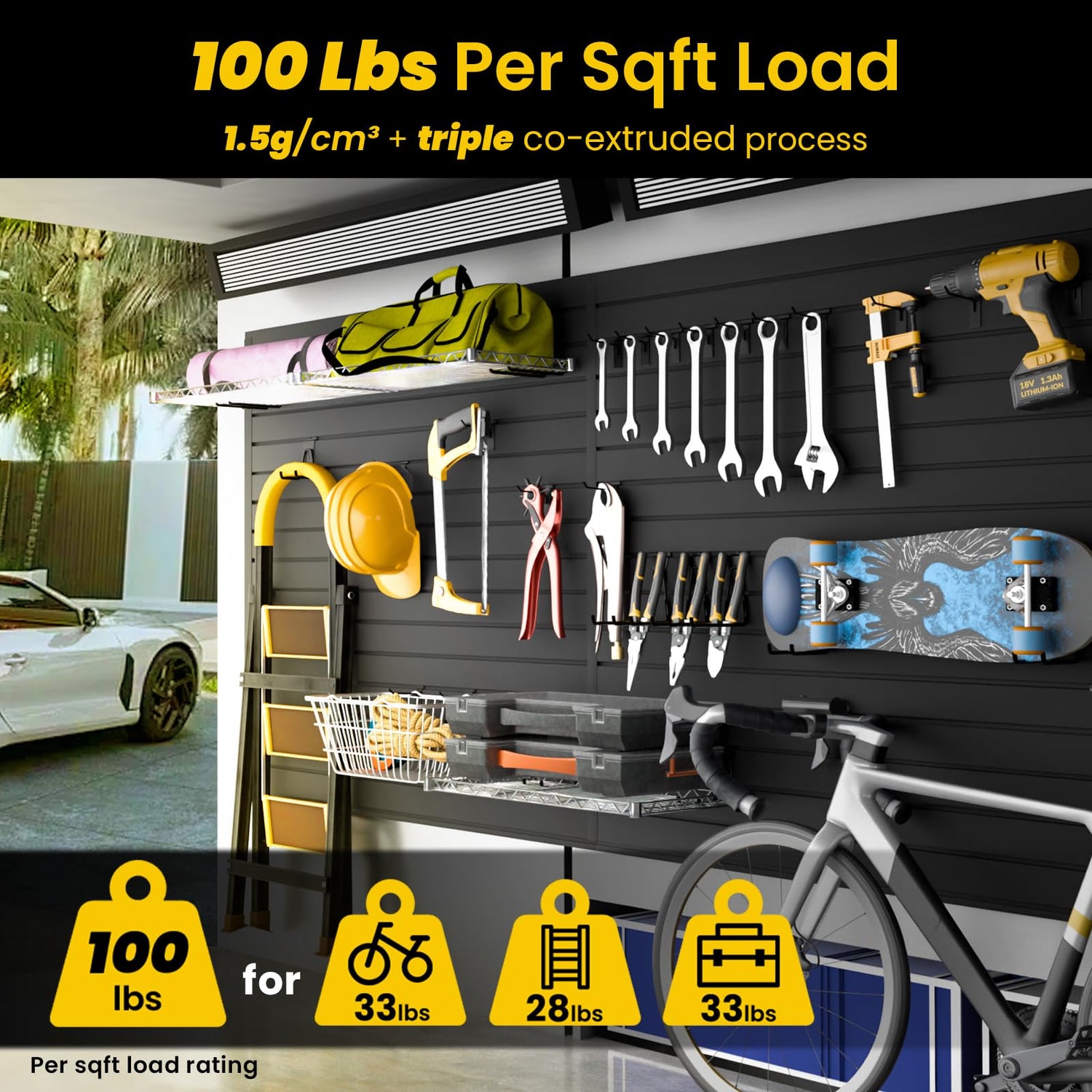 - 【Cycle & Gear Vertical Mastery】AQOVOR's industrial grade slatwall panels (100 lbs per sqft load rating)+ multi-hook kit transforms garage walls into bike/tool havens. Includes hooks (20-70 lb capacity) & universal 'L' grooves fitting 90% of slat wall accessories. Increase wall space utilization by 300% - easily store mountain bikes, ladders, and power tools without scratching the surface. When correctly fastened to wall studs