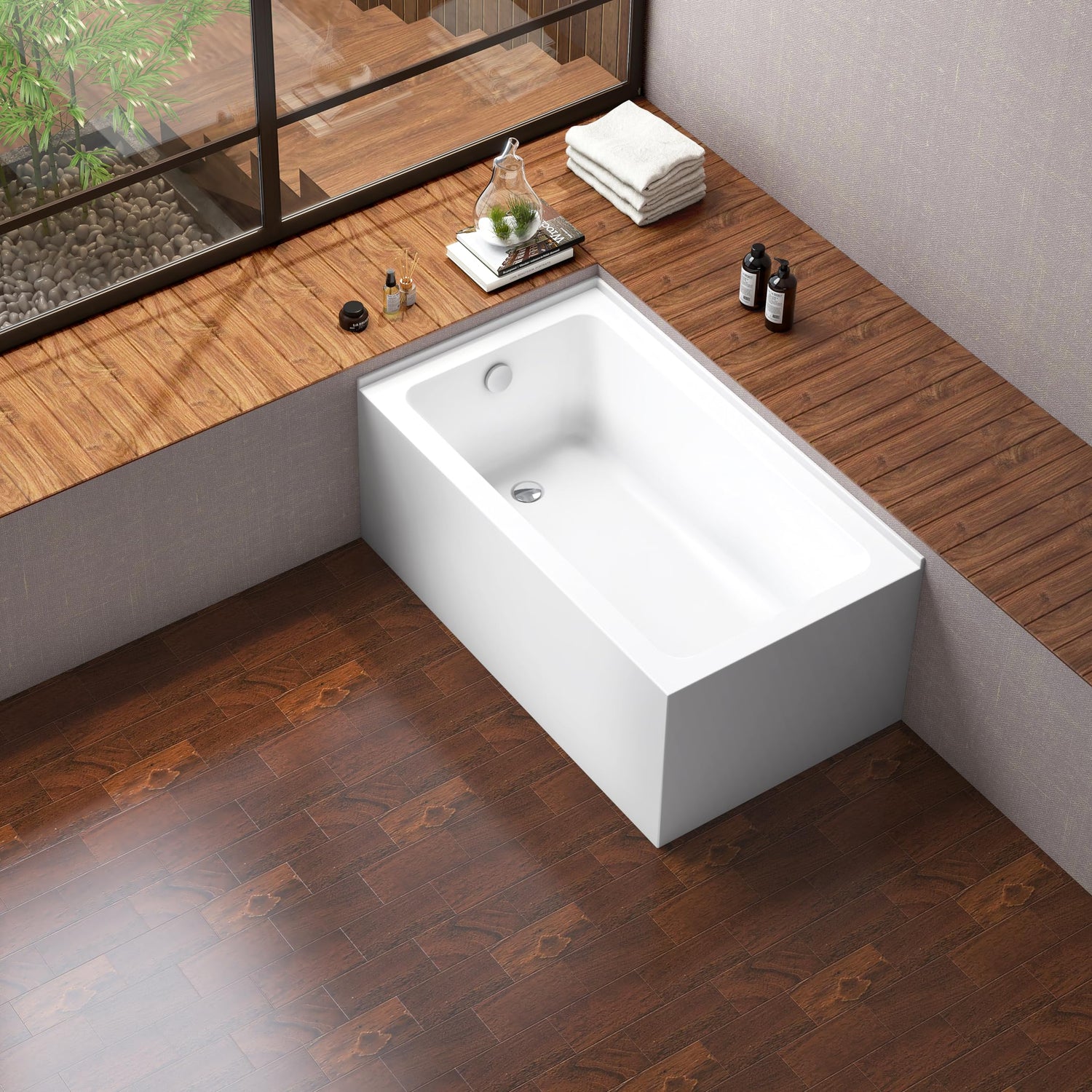 Aqua Eden VTAP5430L22TS 54-Inch Acrylic 2-Wall Corner Alcove Tub with Left Hand Drain, White