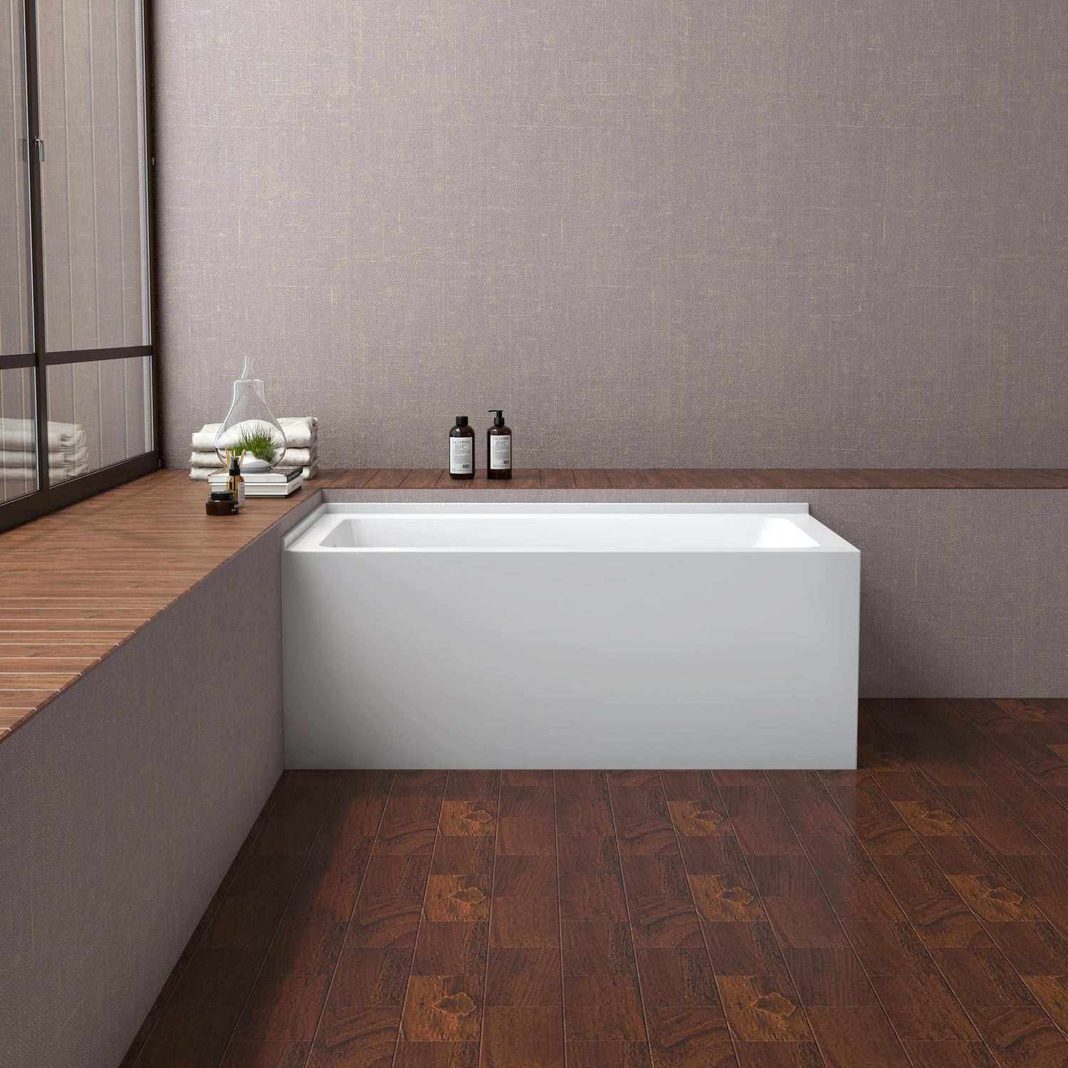 Details: Create lasting memories of bubble baths with your children or relax from the stresses of the day with a top-notch alcove tub by Kingston Brass. Extremely user-friendly with effortless installation and uncomplicated construction, the alcove tub is the perfect addition to your home if you are looking for pristine performance and polished refinement. The Oriel 54-inch corner anti-skid acrylic alcove tub with left hand drain will wholly beautify your home for years to come thanks to its durable and easily repairable acrylic construction. This bathtub is finished inside and out in a brilliant, high-gloss white that ensures crisp aesthetics and easy care now and well in the future.