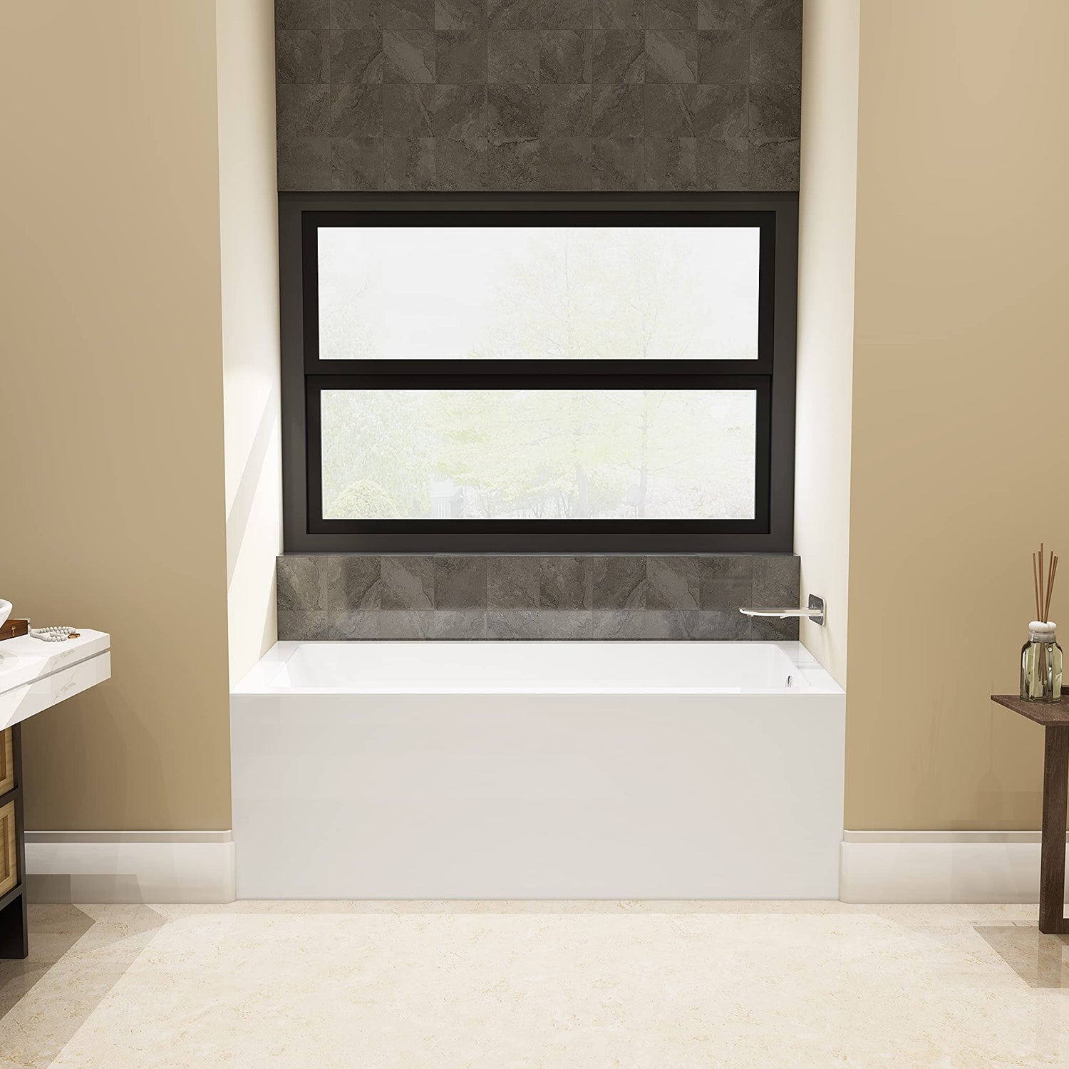 Details: Create lasting memories of bubble baths with your children or relax from the stresses of the day with a top-notch alcove tub by Kingston Brass. Extremely user-friendly with effortless installation and simplistic construction, the alcove tub is the perfect addition to your home if you are looking for pristine performance and polished refinery. The Aqua Eden 60-inch acrylic alcove tub with right hand drain hole will wholly beautify your home for years to come thanks to its durable and easily repairable acrylic construction. This bathtub is finished inside and out in a brilliant, high-gloss white that ensures crisp aesthetics and easy care now and well in the future.
