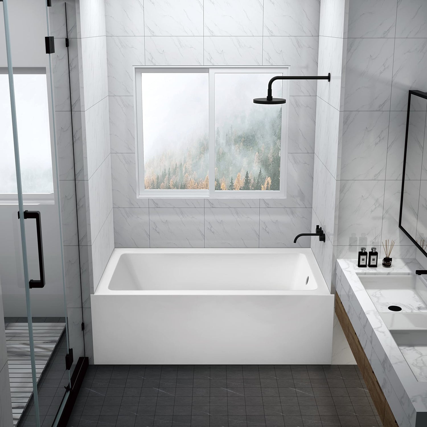 Aqua Eden VTAP6032R22C 60-Inch Anti-Skid Acrylic 3-Wall Alcove Tub with Right Hand Drain Hole, White