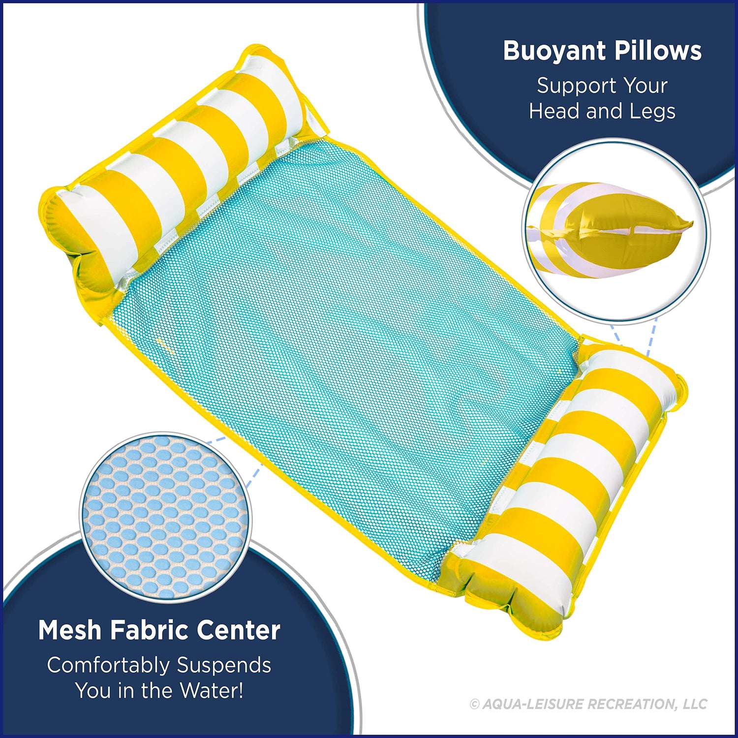 Aqua Original 4-in-1 Monterey Hammock Pool Float & Water Hammock – Multi-Purpose, Inflatable Pool Floats for Adults – Patented Thick, Non-Stick PVC Material – Golden Sunshine