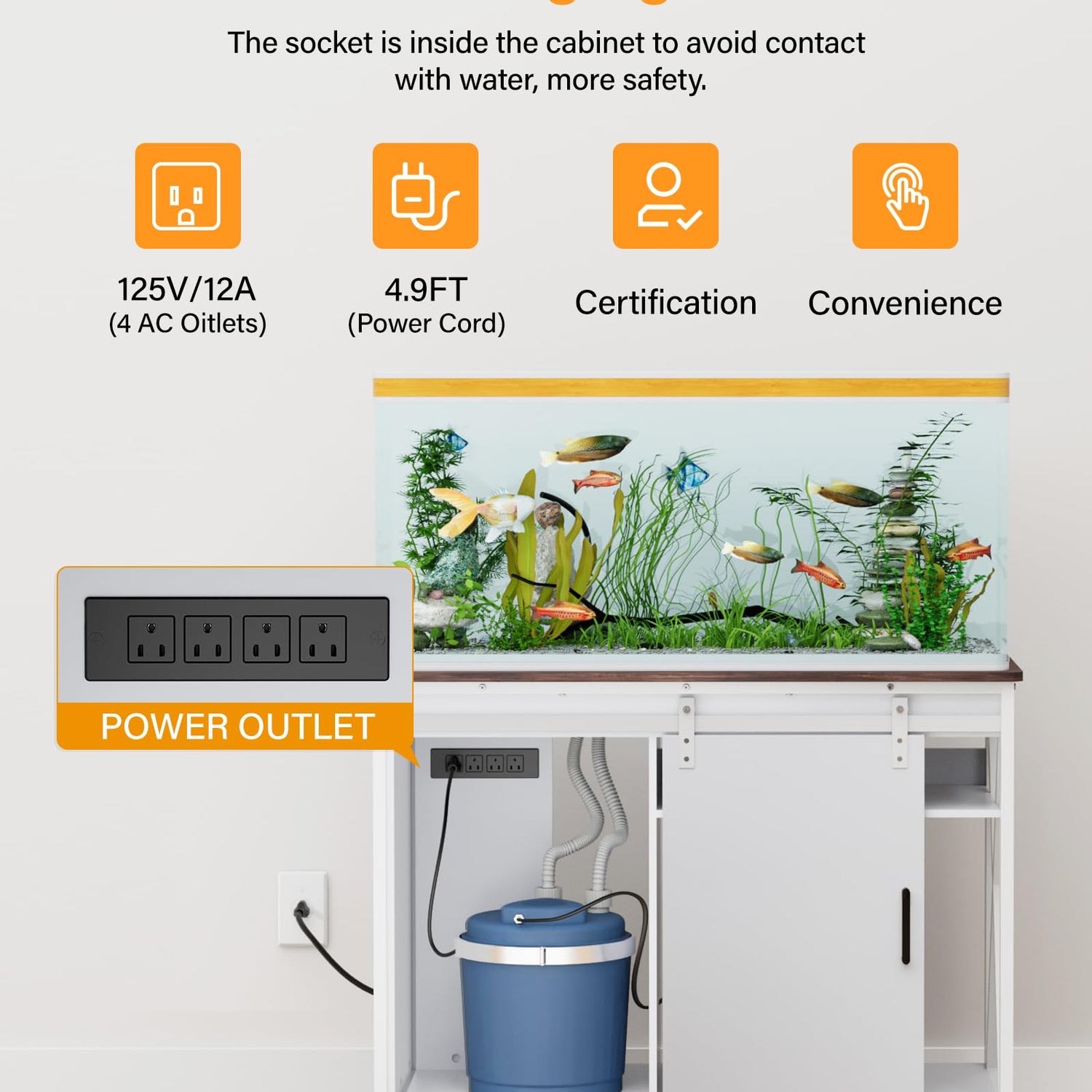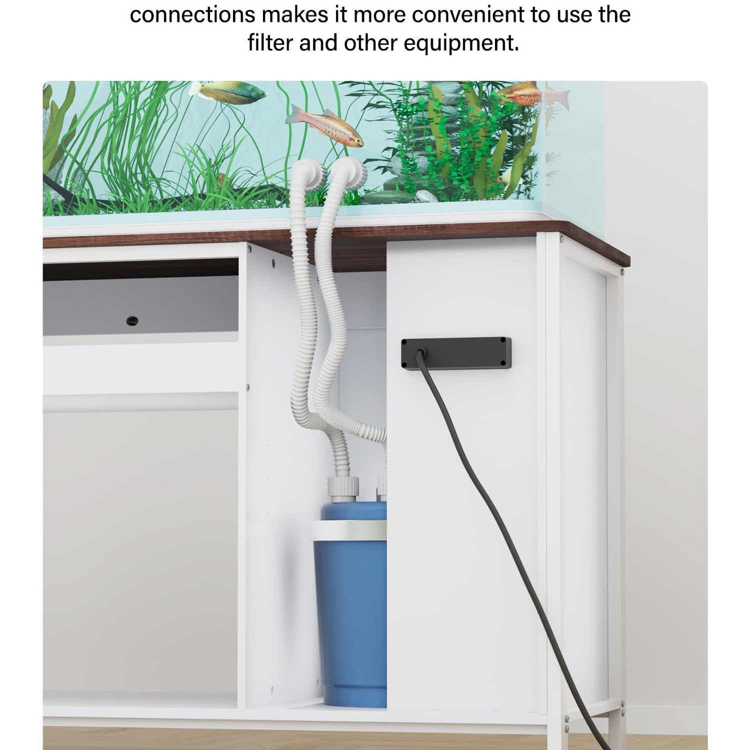 - Sturdy and Stable Tank Stand – Designed for Safety: This aquarium stand is engineered with a sturdy X-cross metal frame and adjustable foot pads, providing exceptional stability even on uneven floors. The structure minimizes wobbling, ensuring your fish tank stays securely in place anytime.The inward-facing power outlets prevent water from entering when changing the water in your aquarium.