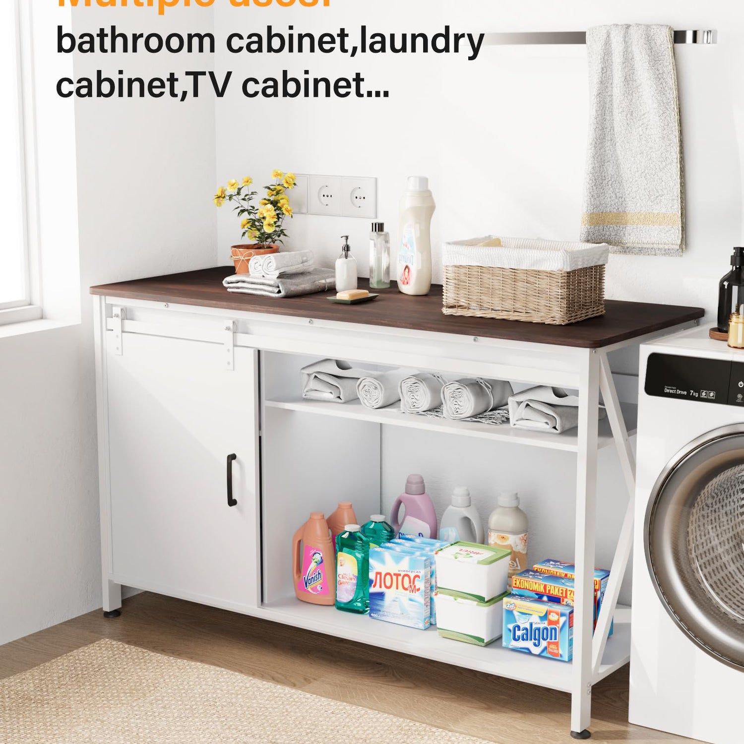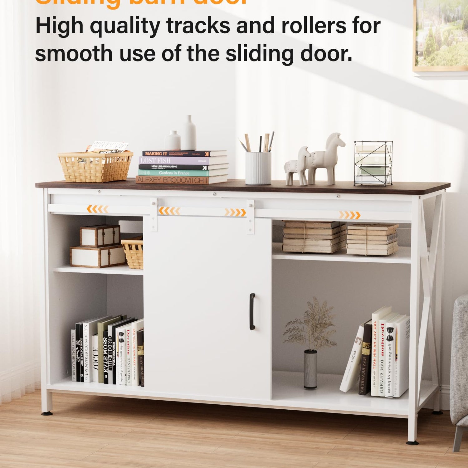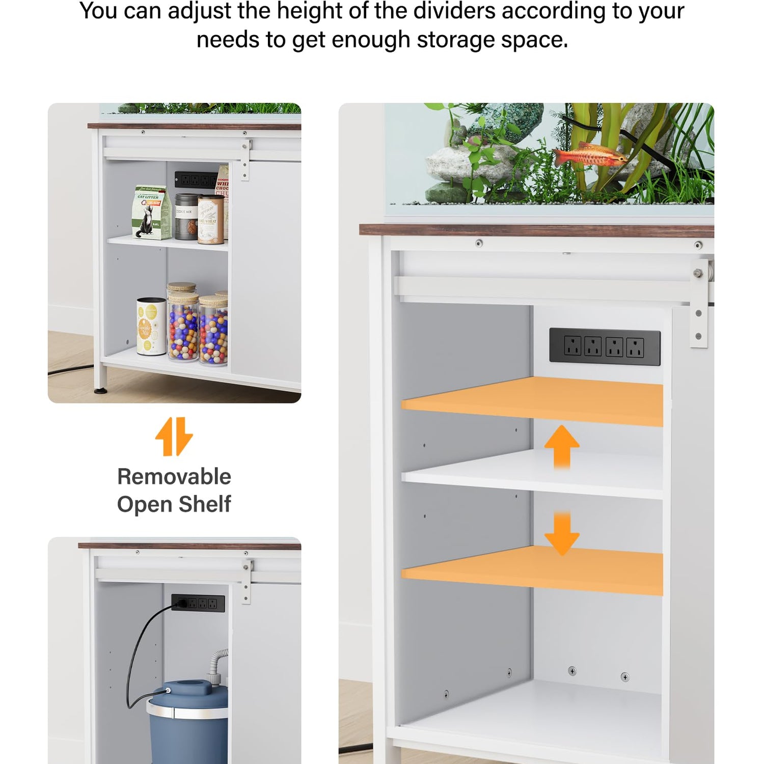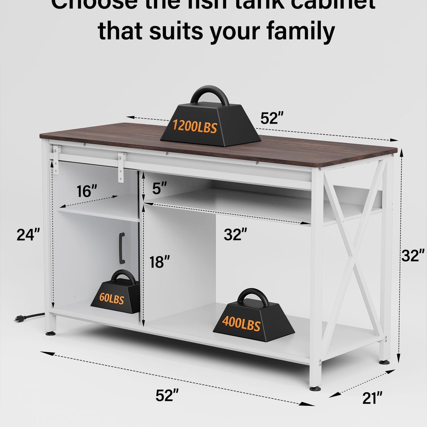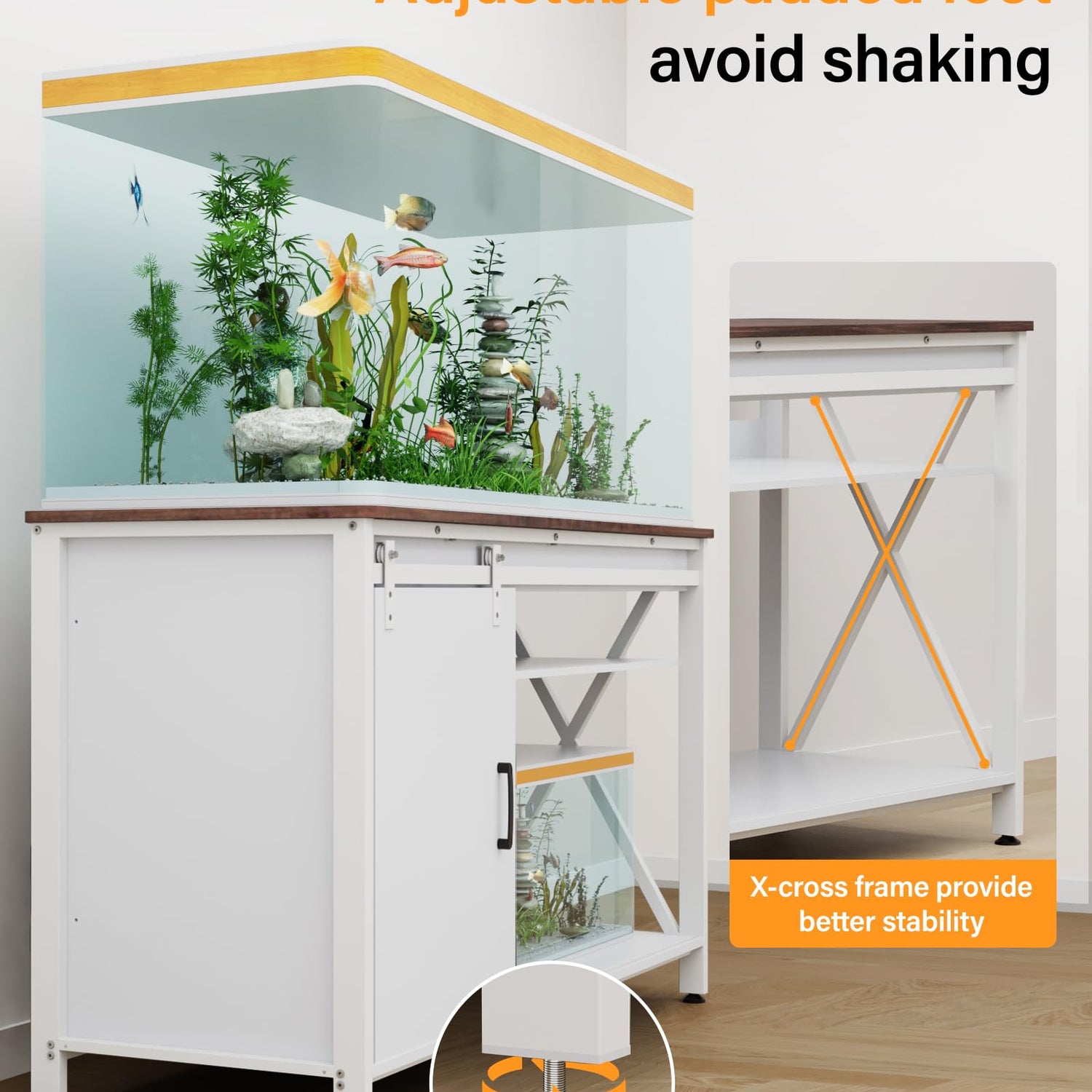 - Modern Appearance: White Fish Tank Stand with a farmhouse-style sliding barn door, metal frame and MDF tabletop, this aquarium stand fits perfectly into any contemporary, industrial, or rustic decor. Ideal for fish aquarium, turtle enclosures, or reptile tank in the living room, bedroom, or office. (Aquarium not included.)