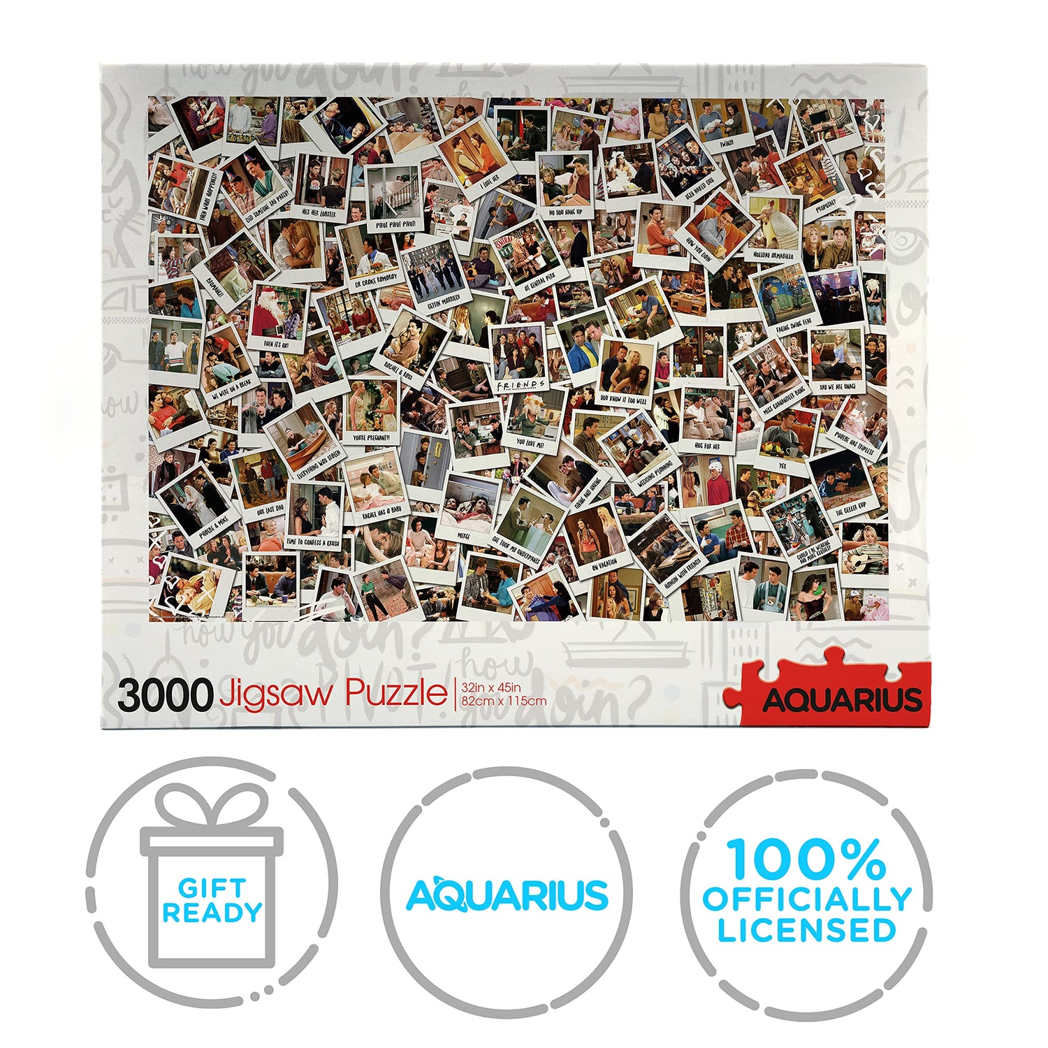 Details: RELIVE YOUR FAVORITE TELEVISION SERIES with this 3000 piece puzzle higlighting some of the most memorable moments from the hit show, Friends. Could you be having any more fun? This puzzle measures at a whopping 32 x 45 inches when completed. LOOKING FOR FRIENDS GIFTS? This Friends puzzle is the ultimate Friends gift for Friends TV show fans of all ages. Perfect for family puzzling, game night, holidays, and birthdays, kids and adults will absolutely love it. PREMIUM QUALITY YOU CAN TRUST: Our precision cutting technique ensures a perfect fit of all puzzle pieces, leaving virtually no puzzle dust behind. We use thick quality paper that is glare-free so you can show off your masterpiece with pride. 100% OFFICIALLY LICENSED FRIENDS TV SHOW MERCHANDISE: All our Friends Puzzles are designed by AQUARIUS, officially licensed, and 100% authentic. They're the perfect piece of Friends TV Show collectible memorabilia to add to your collection. THE AQUARIUS PROMISE: It's simple. We stand behind our products 100% and if you're not completely satisfied with your purchase, we'll offer you a full refund! Click the yellow "Add to Cart" button today and buy with confidence. AQUARIUS games, puzzles, and playing cards are both a reflection of today’s favorites and a nod to the past and are designed to entertain young and old alike.