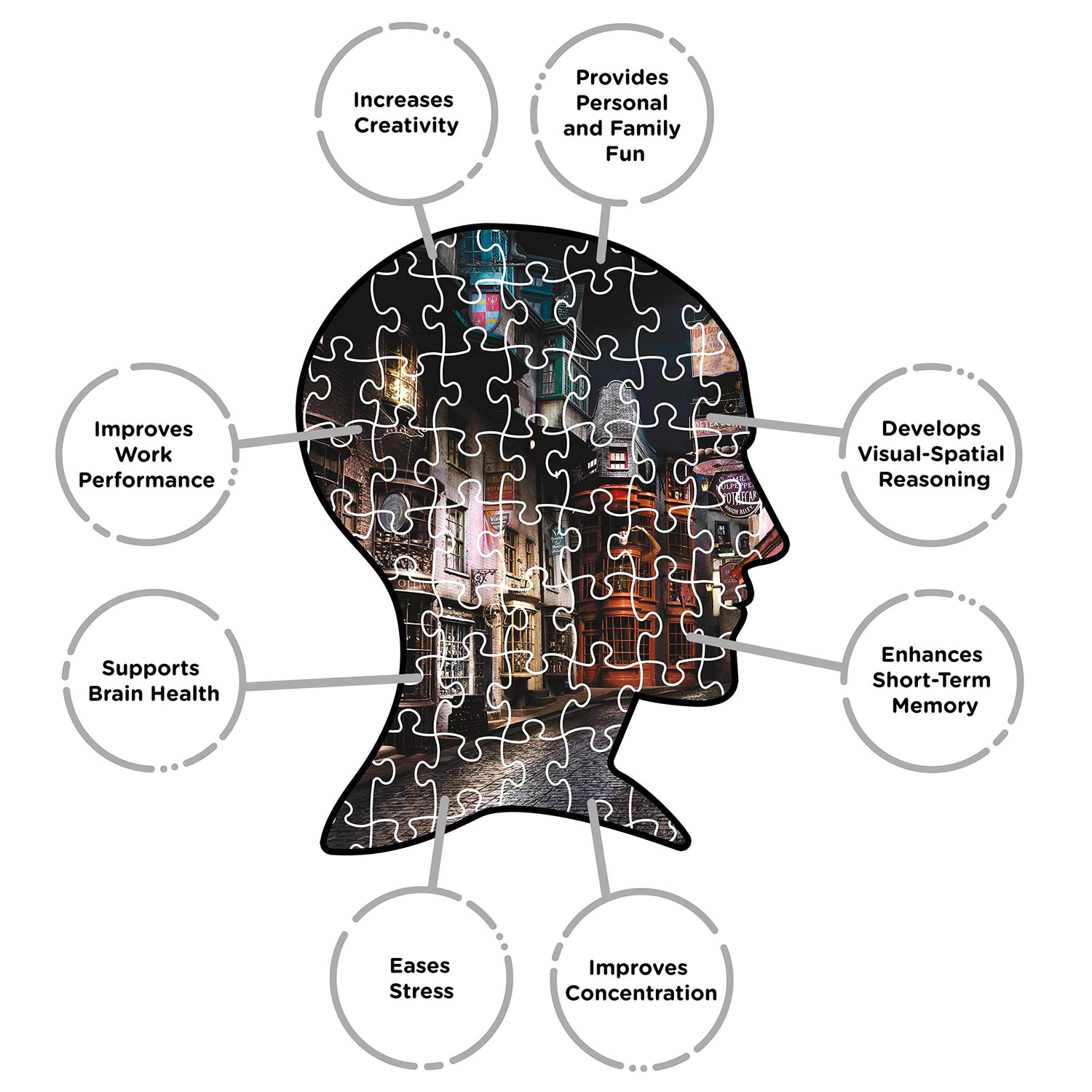 - UNLOCK YOUR INNER WIZARD… Draw your wand, tap the right bricks, and venture into the bustling street of Diagon Alley with this 1000 piece puzzle featuring the famous cobblestoned wizarding shopping alley. The completed puzzle measures 20 x 28 inches