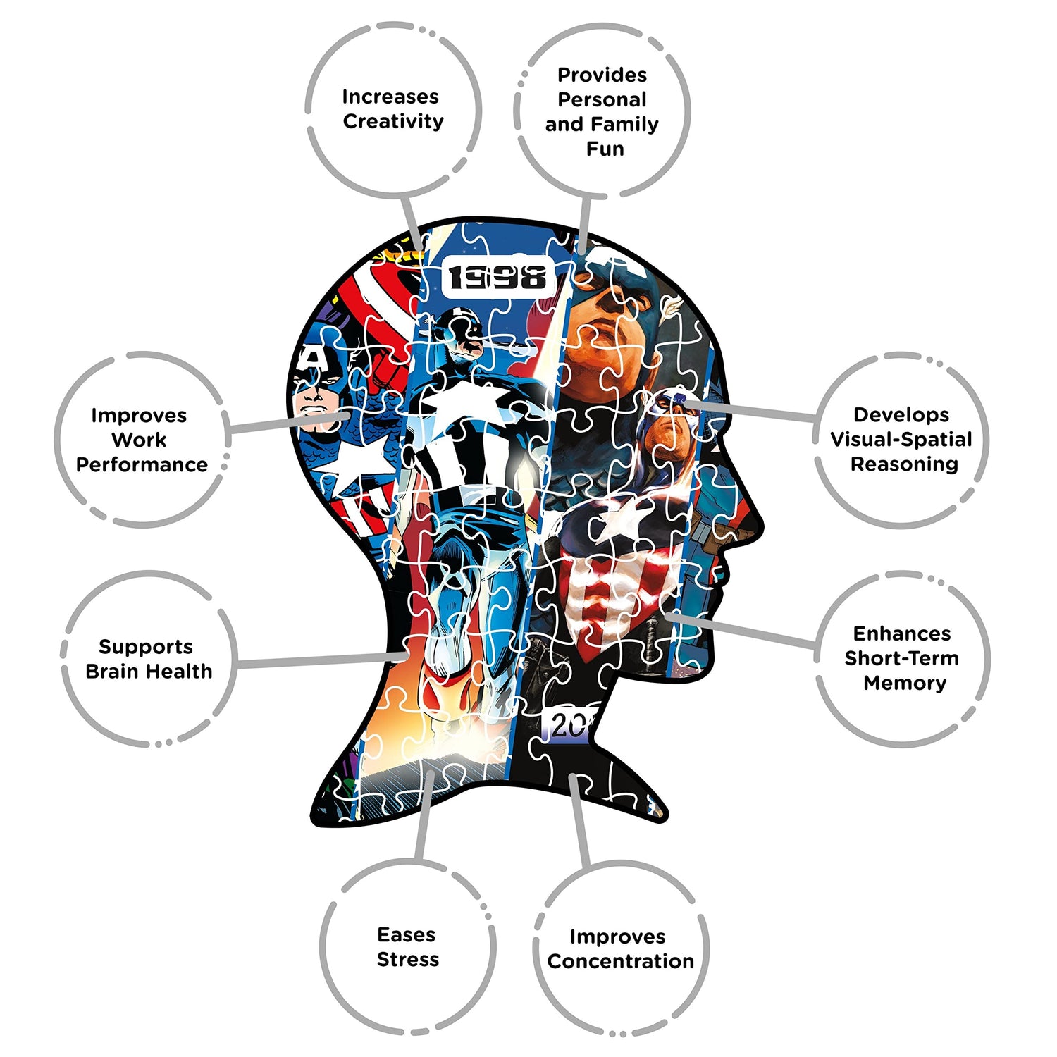 - LOOKING FOR MARVEL GIFTS? This Marvel puzzle is the ultimate Marvel gift for Marvel Comics fans and Captain America fans of all ages. Perfect for family puzzling, game night, birthdays, holidays, kids and adults will absolutely love it