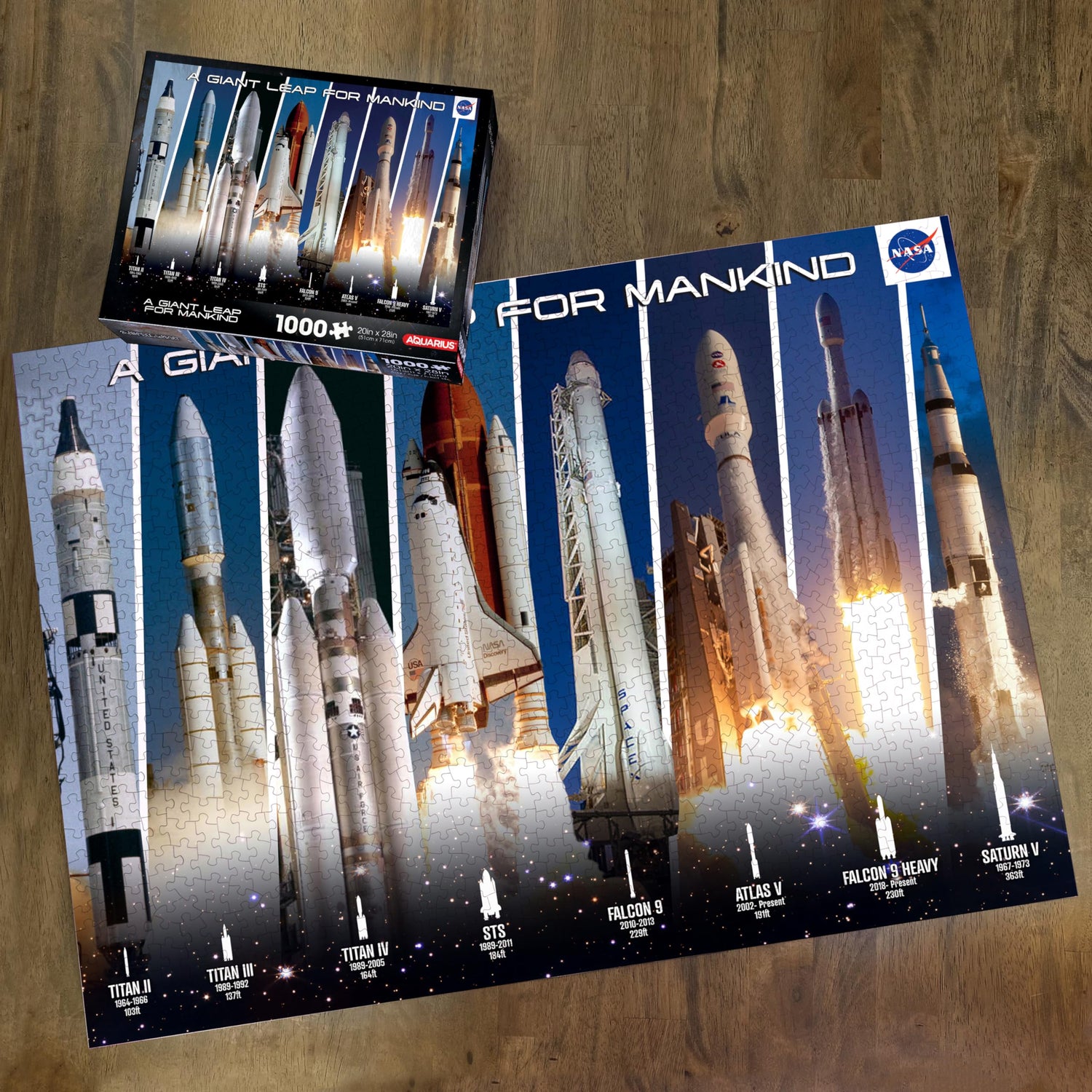 Details: 1000 PIECE JIGSAW PUZZLE: NASA fans if you're up for a challenge (& you know you are!), you'll be well rewarded with this fantastic 1000 piece puzzle featuring NASA's Rockets. This unique puzzle measures 20 x 28 in. LOOKING FOR NASA GIFTS? This NASA Rocket Grid puzzle is the ultimate gift for NASA fans of all ages. Perfect for family puzzling, game night, birthdays, holidays, kids and adults will absolutely love receiving it as a gift. PREMIUM QUALITY YOU CAN TRUST: Our precision cutting technique ensures a perfect fit of all puzzle pieces, leaving virtually no puzzle dust behind. We use thick quality paper that is glare-free so you can show off your masterpiece with pride 100% OFFICIALLY LICENSED NASA MERCHANDISE: This NASA Rocket Grid puzzle is designed by AQUARIUS, officially licensed, and 100% authentic. It's the perfect piece of NASA collectible memorabilia to add to your collection.