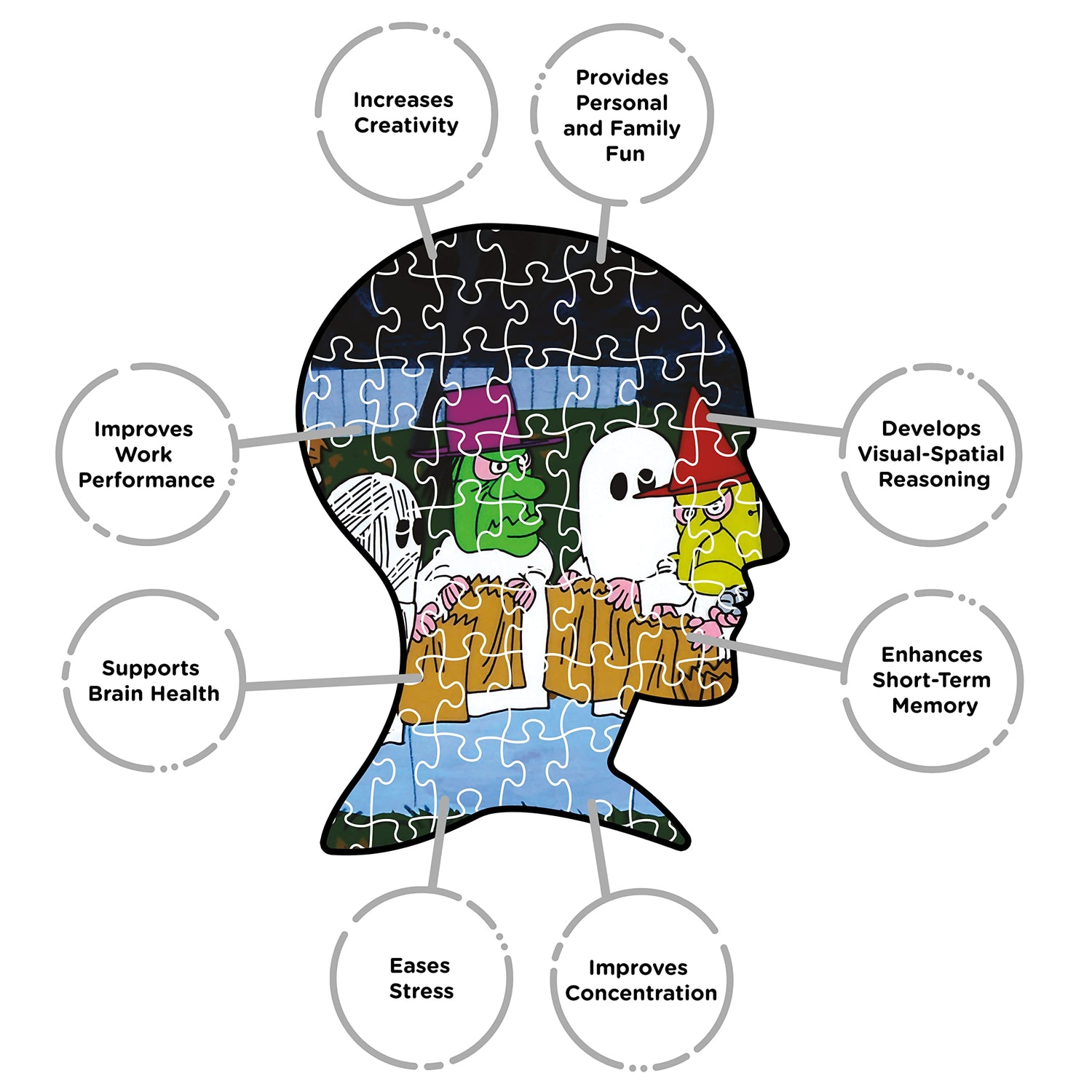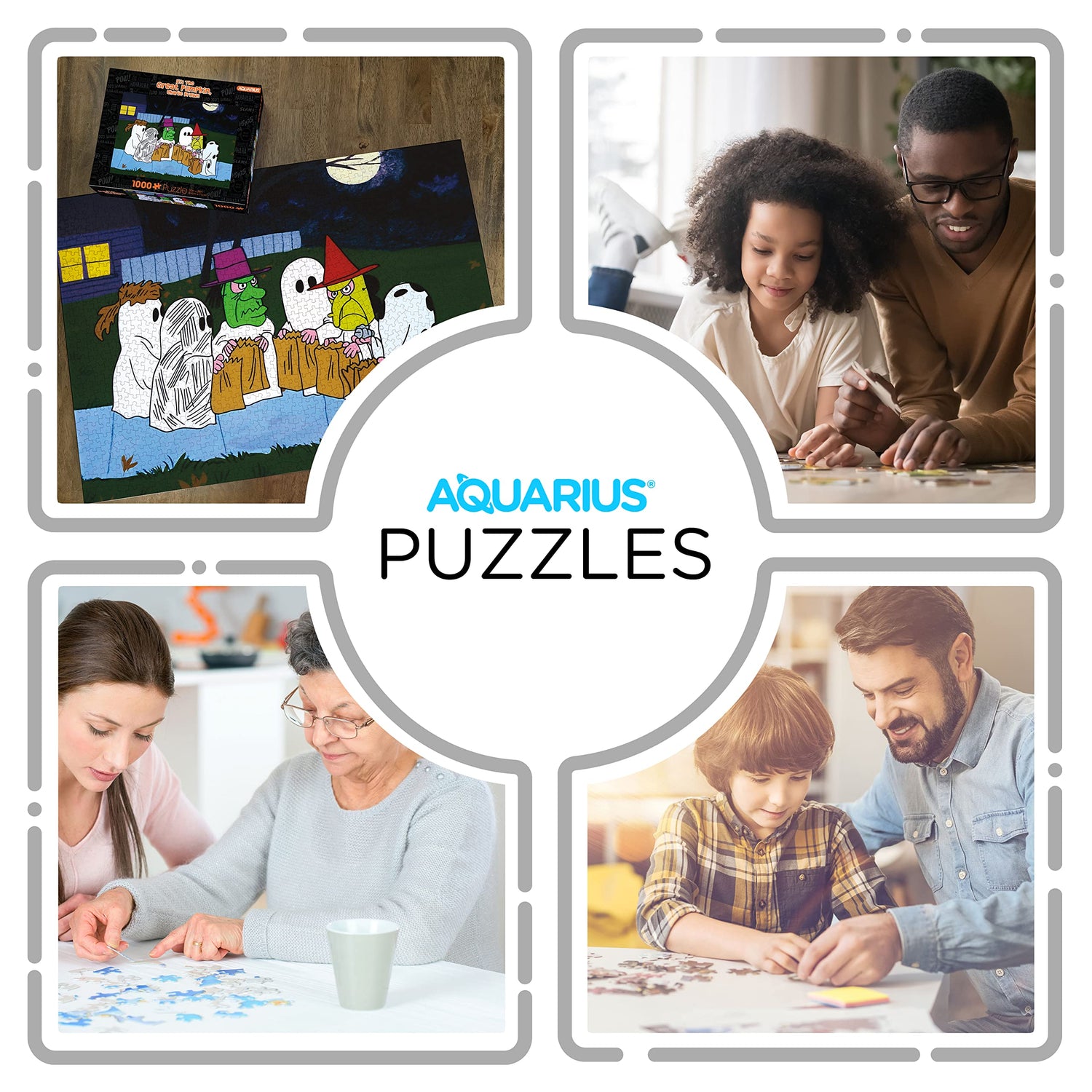Details: 1000 PIECE JIGSAW PUZZLE: Peanuts fans will have love this 1000 piece puzzle featuring a classic image from their Halloween special. This unique puzzle measures 20 x 28 in and fits in a standard size frame. LOOKING FOR PEANUTS HALLOWEEN GIFTS? This Peanuts Halloween puzzle is the ultimate gift for Peanuts Halloween fans of all ages. Perfect for family puzzling, game night, birthdays, holidays, kids and adults will absolutely love receiving it as a gift. PREMIUM QUALITY YOU CAN TRUST: Our precision cutting technique ensures a perfect fit of all puzzle pieces, leaving virtually no puzzle dust behind. We use thick quality paper that is glare-free so you can show off your masterpiece with pride 100% OFFICIALLY LICENSED PEANUTS HALLOWEEN MERCHANDISE: This Peanuts Halloween puzzle is designed by AQUARIUS, officially licensed, and 100% authentic. It's the perfect piece of Peanuts Halloween collectible memorabilia to add to your collection.