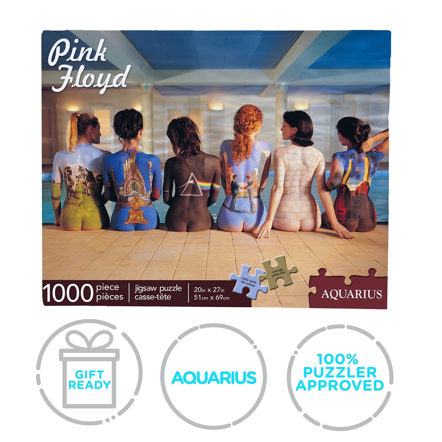 - 1000 PIECE JIGSAW PUZZLE: Piece together this 1000 piece puzzle of Pink Floyd’s ‘Back Catalog’ featuring six Pink Floyd album covers, painted by artist Phyllis Cohen onto the backs of models. The completed puzzle measures 20 x 27 inches