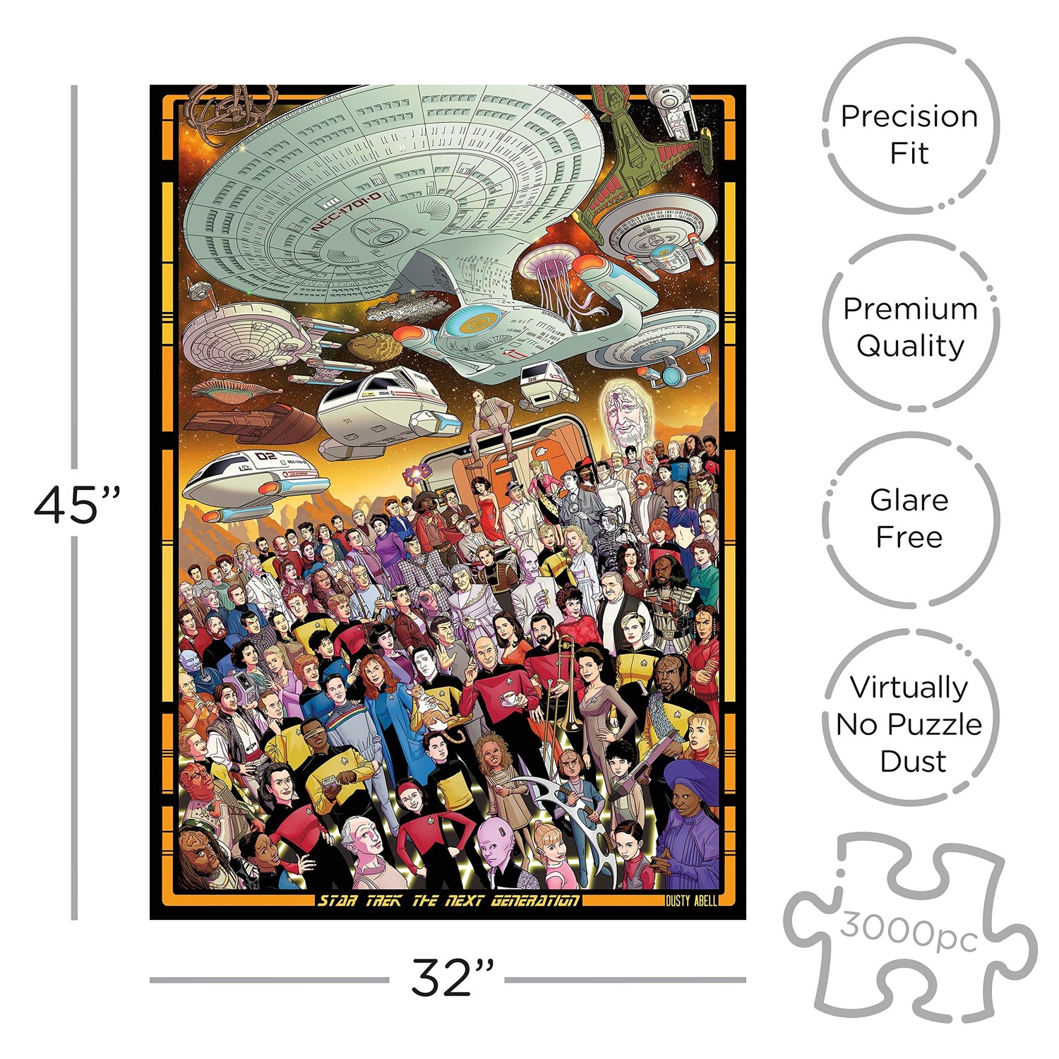 - 3000 PIECE JIGSAW PUZZLE: Fans of the Star Trek: The Next Generation TV show will love this 3000 piece puzzle measuring at a whopping 32 x 45 inches when completed