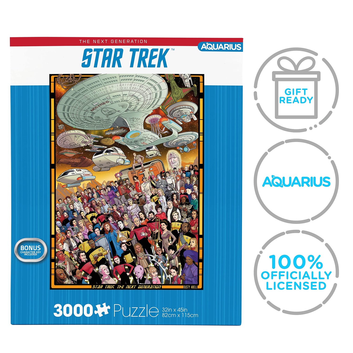 Details: 3000 PIECE JIGSAW PUZZLE: Fans of the Star Trek: The Next Generation TV show will love this 3000 piece puzzle measuring at a whopping 32 x 45 inches when completed. LOOKING FOR STAR TREK GIFTS? This Star Trek puzzle is the ultimate Trekky gift for Star Trek fans of all ages. Perfect for family puzzling, game night, holidays, and birthdays, kids and adults will absolutely love it. PREMIUM QUALITY YOU CAN TRUST: Our precision cutting technique ensures a perfect fit of all puzzle pieces, leaving virtually no puzzle dust behind. We use thick quality paper that is glare-free so you can show off your masterpiece with pride. 100% OFFICIALLY LICENSED STARK TREK MERCHANDISE: All our Star Trek Puzzles are designed by AQUARIUS, officially licensed, and 100% authentic. They're the perfect piece of Star Trek collectible memorabilia to add to your collection. THE AQUARIUS PROMISE: It's simple. We stand behind our products 100% and if you're not completely satisfied with your purchase, we'll offer you a full refund Click the yellow Add to Cart button today and buy with confidence. AQUARIUS games, puzzles, and playing cards are both a reflection of today’s favorites and a nod to the past and are designed to entertain young and old alike.