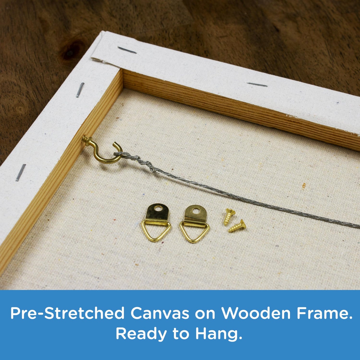 - INCLUDES EVERYTHING YOU NEED: Our paint by numbers kits are complete with 8 pre-mixed high pigment acrylic paints, 2 high quality nylon paint brushes, pre-stretched 8.5" x 11" canvas on a wooden frame and the hanging kit to showcase your masterpiece once complete