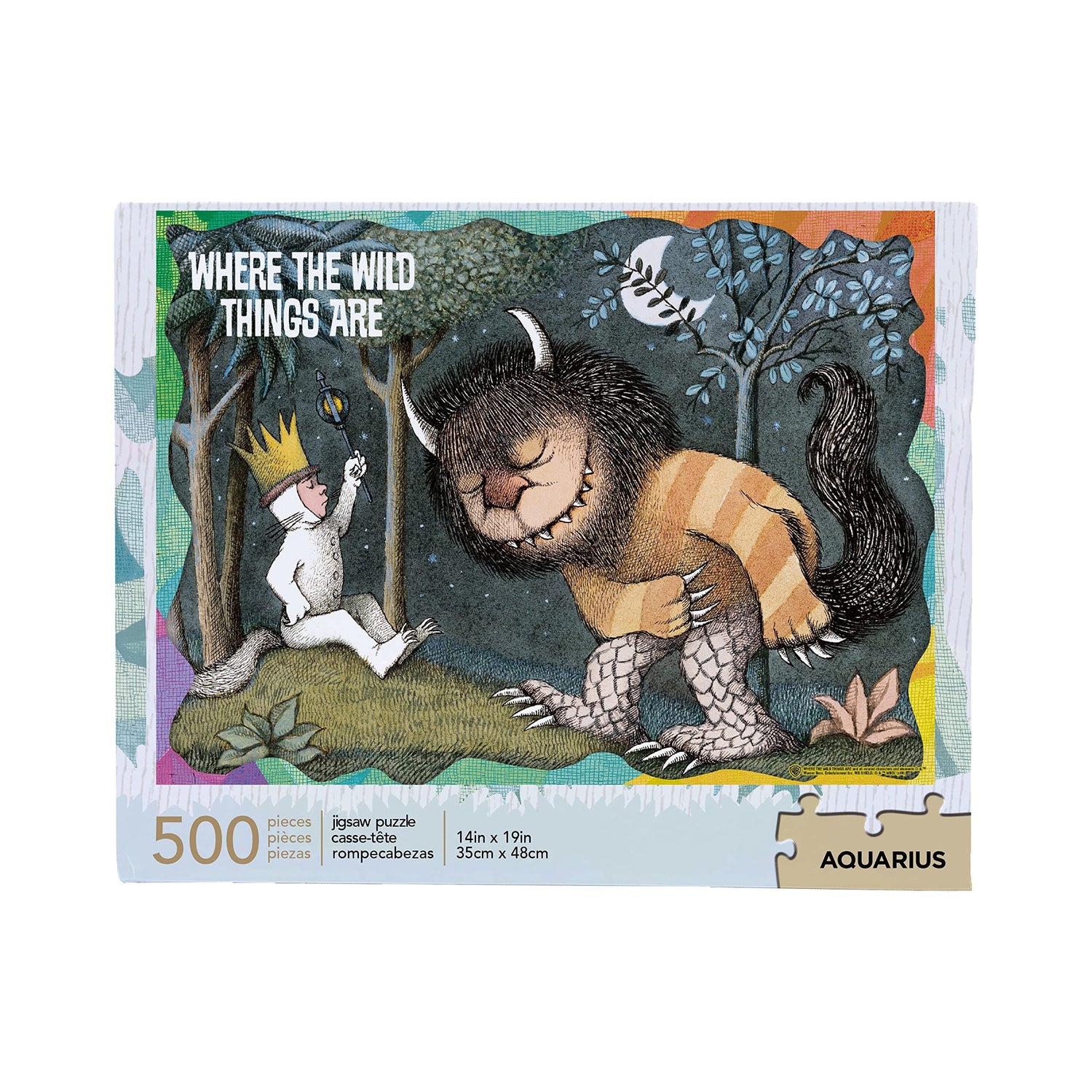 - 500 PIECE JIGSAW PUZZLE: Dress up and explore the jungle as you piece together this 500 piece puzzle featuring Max and one of his loyal subjects from the classic children's book, Where the Wild Things Are. The completed puzzle measures 14 x 19 inches
