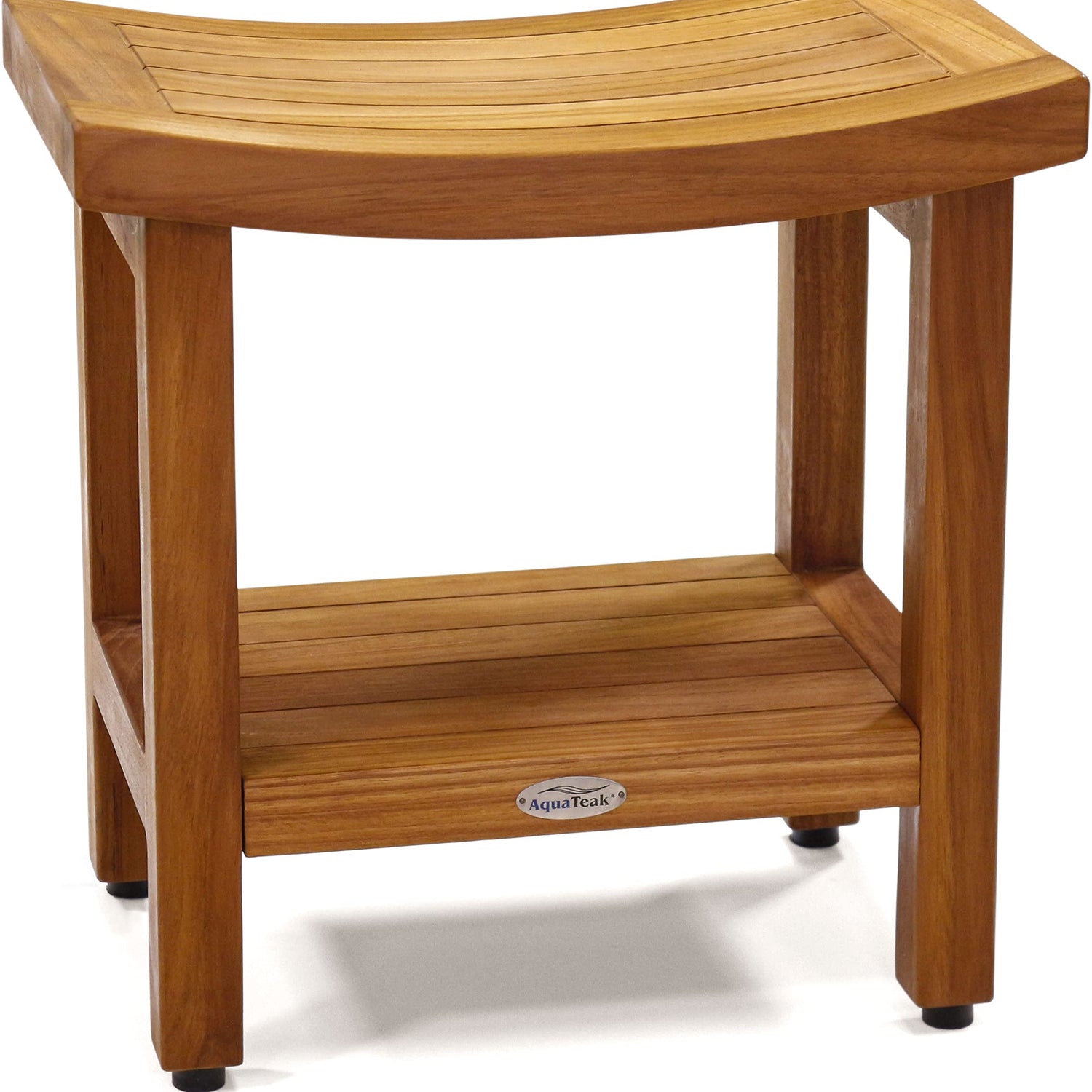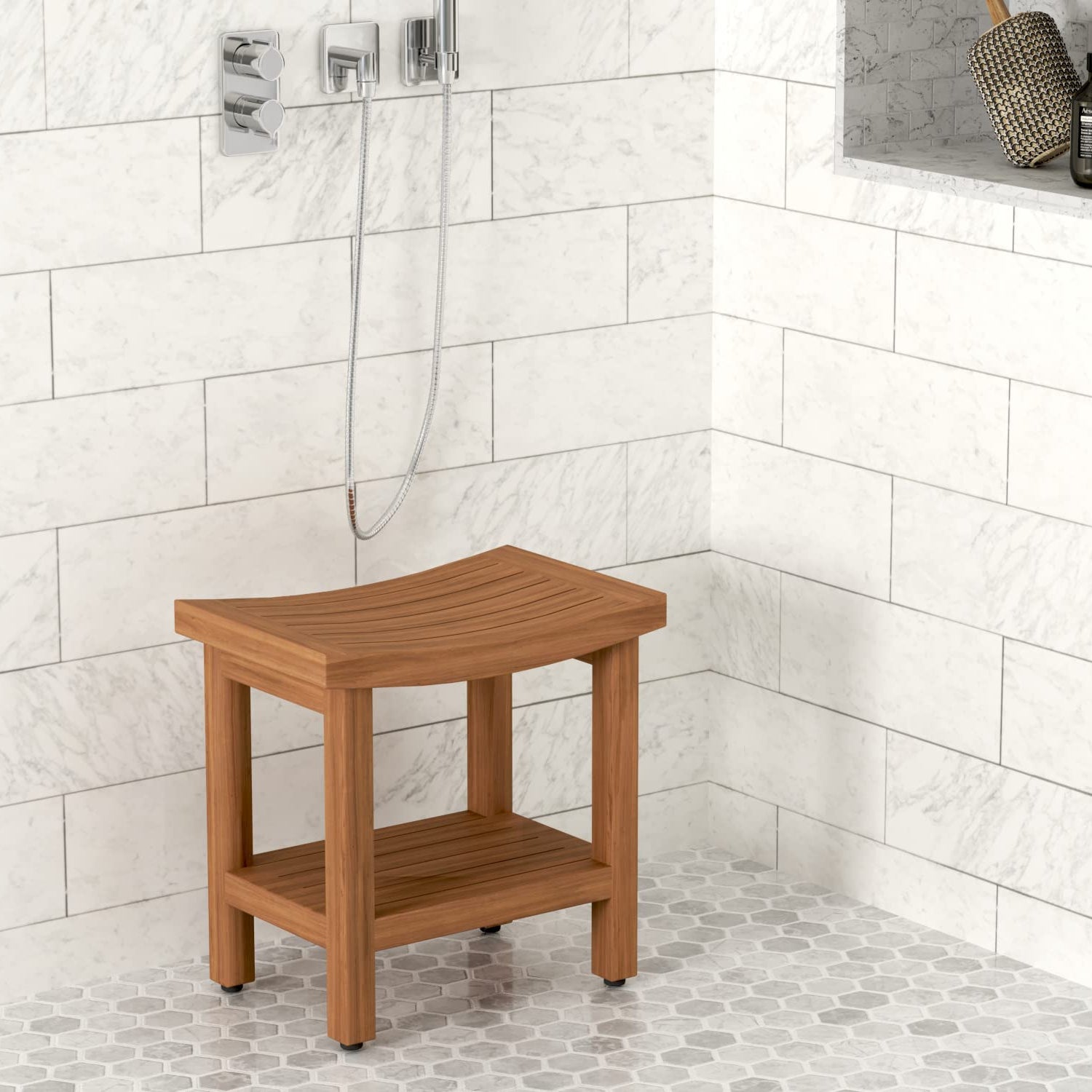 AquaTeak Patented 18" Sumba Teak Shower Bench with Shelf