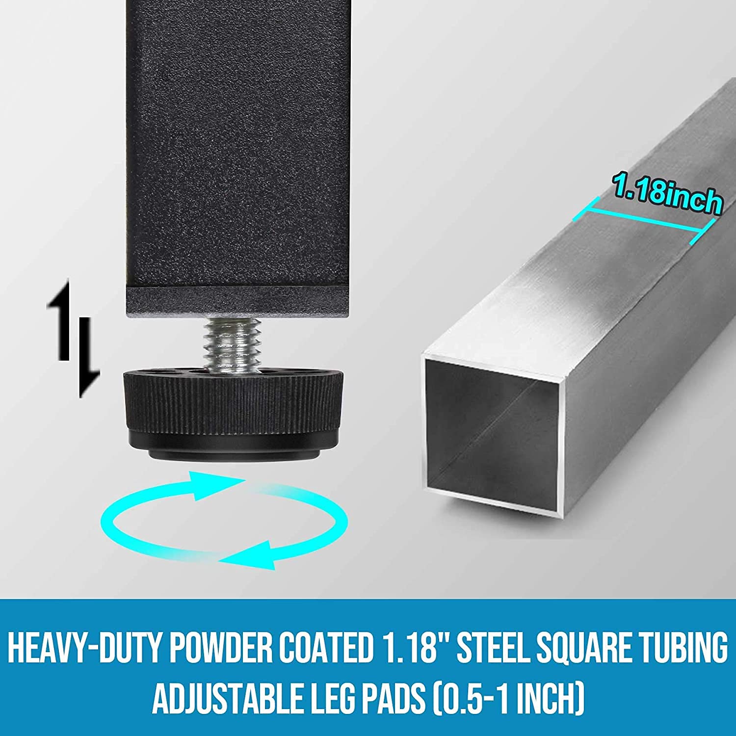 Constructed for stability and long-lasting use, the Aquzee desk features a thicker desktop made of engineered wood that is scratch-resistant and waterproof. With the capacity to hold up to 500 pounds, it’s designed to withstand the rigours of daily use. The heavy-duty metal frame, measuring 1.18 x 1.18 inches, is powder-coated to prevent rust while ensuring stability and durability. For added convenience, movable leg studs allow you to level the desk on uneven floors.