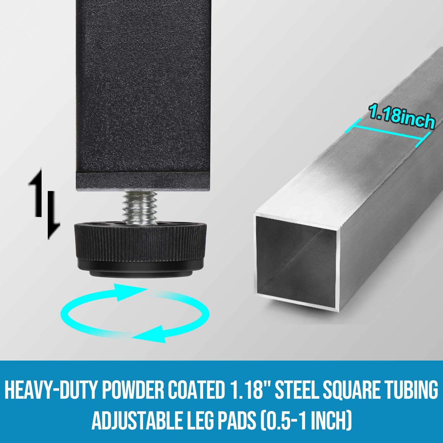 Crafted from environmentally friendly engineered wood, the thick desktop and panel material are not only waterproof and scratch-resistant, but they are also robust enough to support hefty loads of up to 500lbs. The desk's heavy-duty metal frame, featuring a rust-free powder-coated finish, ensures stability and durability for years of reliable use. Plus, adjustable leg studs allow you to level the desk on uneven floors, ensuring that your workspace remains functional and comfortable.