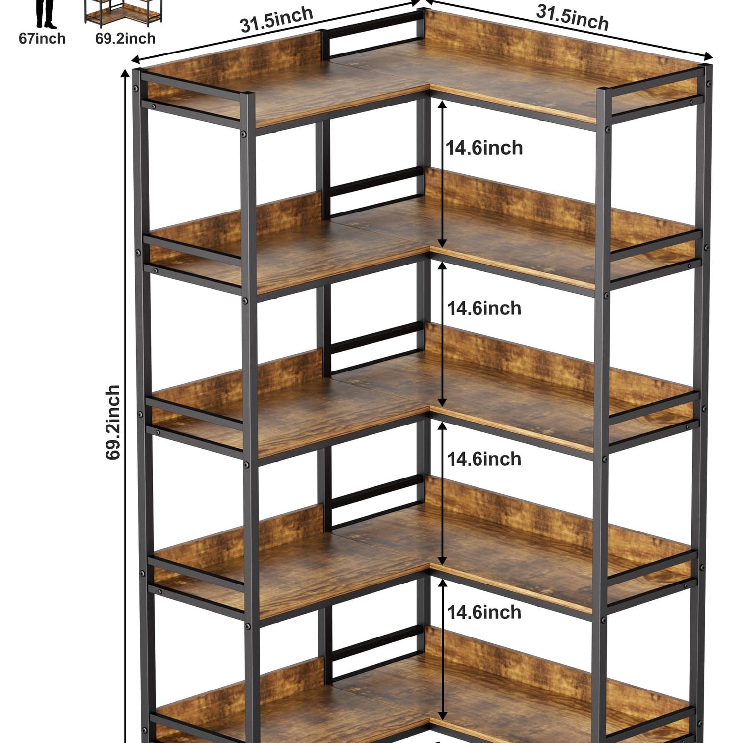 - ✔ 【MAXIMIZE CORNER SPACE】 Get the most out of that unused corner with this corner bookshelf. 31.5"L x 31.5"D x 69”H measurement fits nicely against the wall, it is used not only as a corner bookcase, but also used as a display rack and corner storage rack.