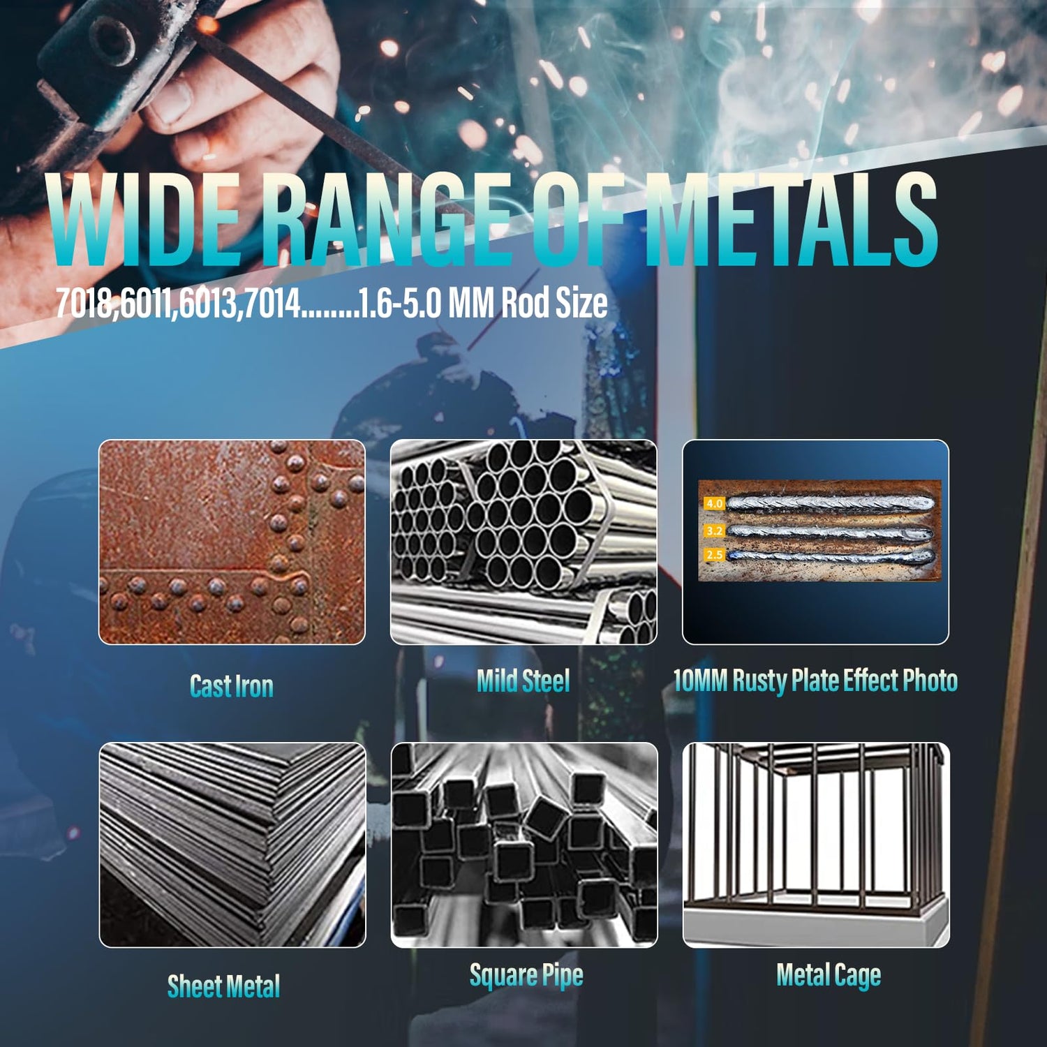 - Safety First: Automatic voltage compensation, over current protection, over load protection, and temperature control for worry-free welding.
