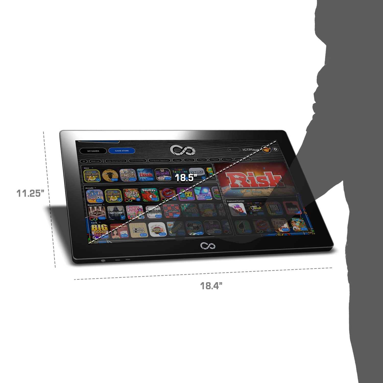 Details: The next generation of the only widely available digital tabletop gaming experience is here! Introducing the Infinity Game Board (IGB). IGB brings all of the amazing games, activities, and features of the original award-winning Infinity Game Table into a more compact and lighter device at a great value. Save space in your home and have an ever-growing library of more than 100 board games and activities available to you for your next family and friends game night. The Infinity Game Table modernizes gameplay, taking play to the next level. Simple one time set up. An ever-expanding library of games, activities, and much more. This is game night reimagined. Want to discover a new game? Access it instantly through the online store. Ready to take on an opponent somewhere else in the world? Connect your table to theirs, remotely.