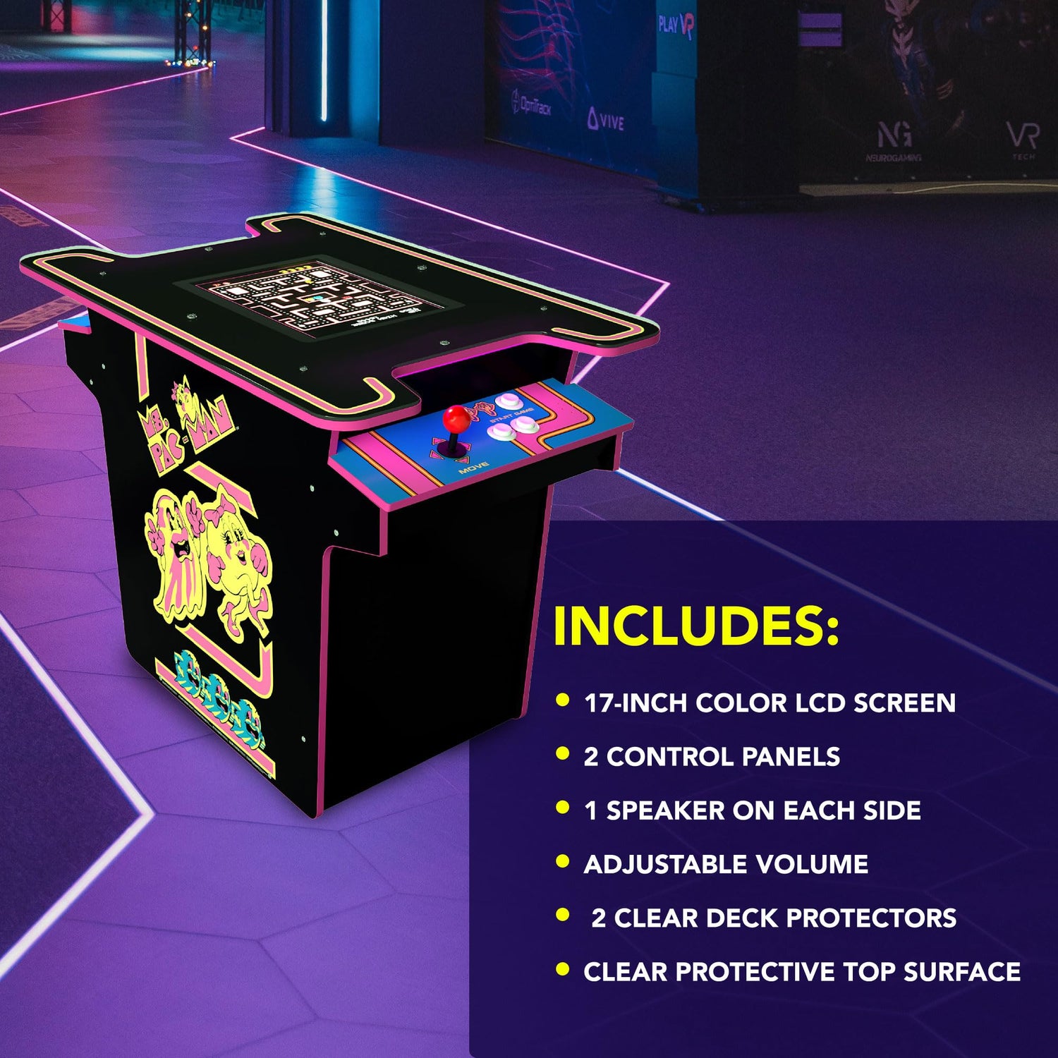 - Step into the classic arcade games such as Ms. PAC-MAN with this 29 inch tall Head-To-Head Arcade Table