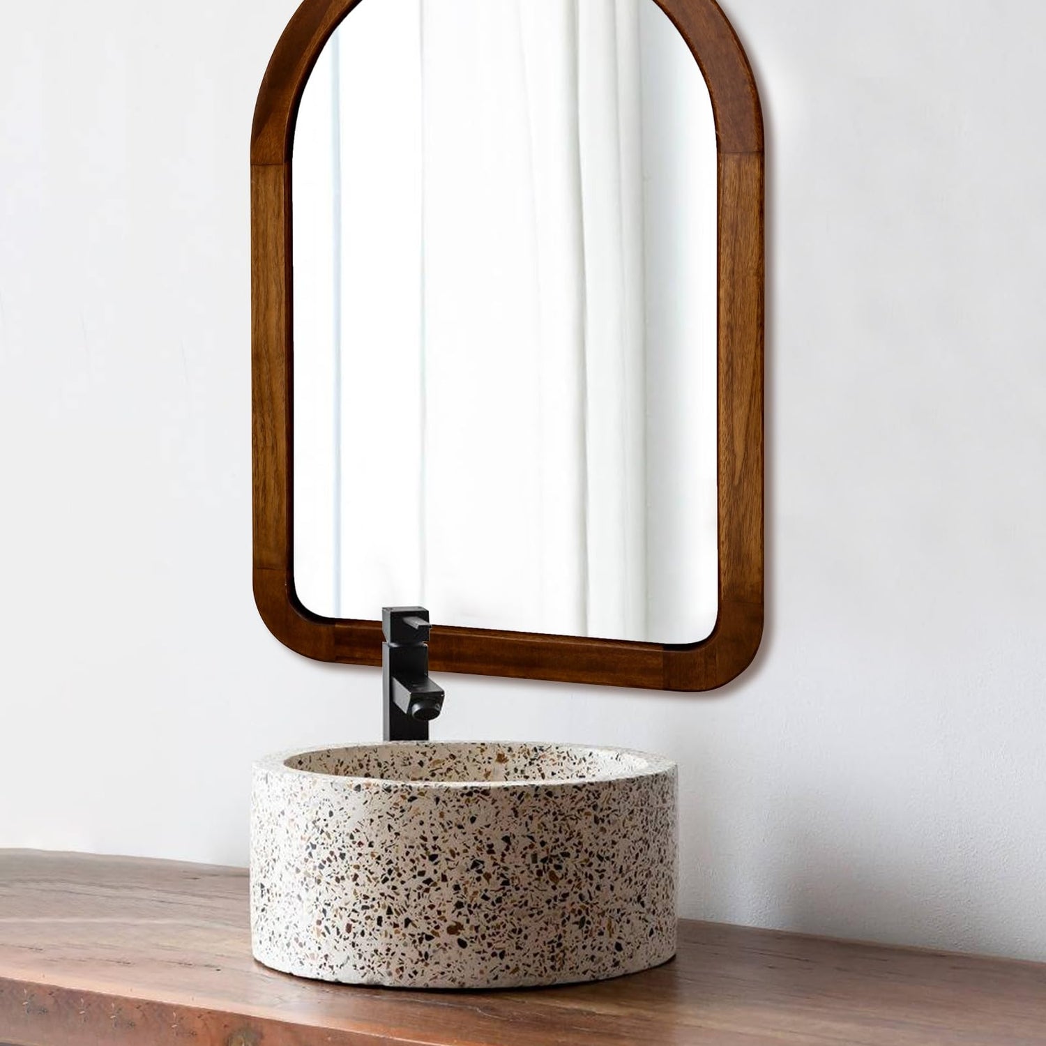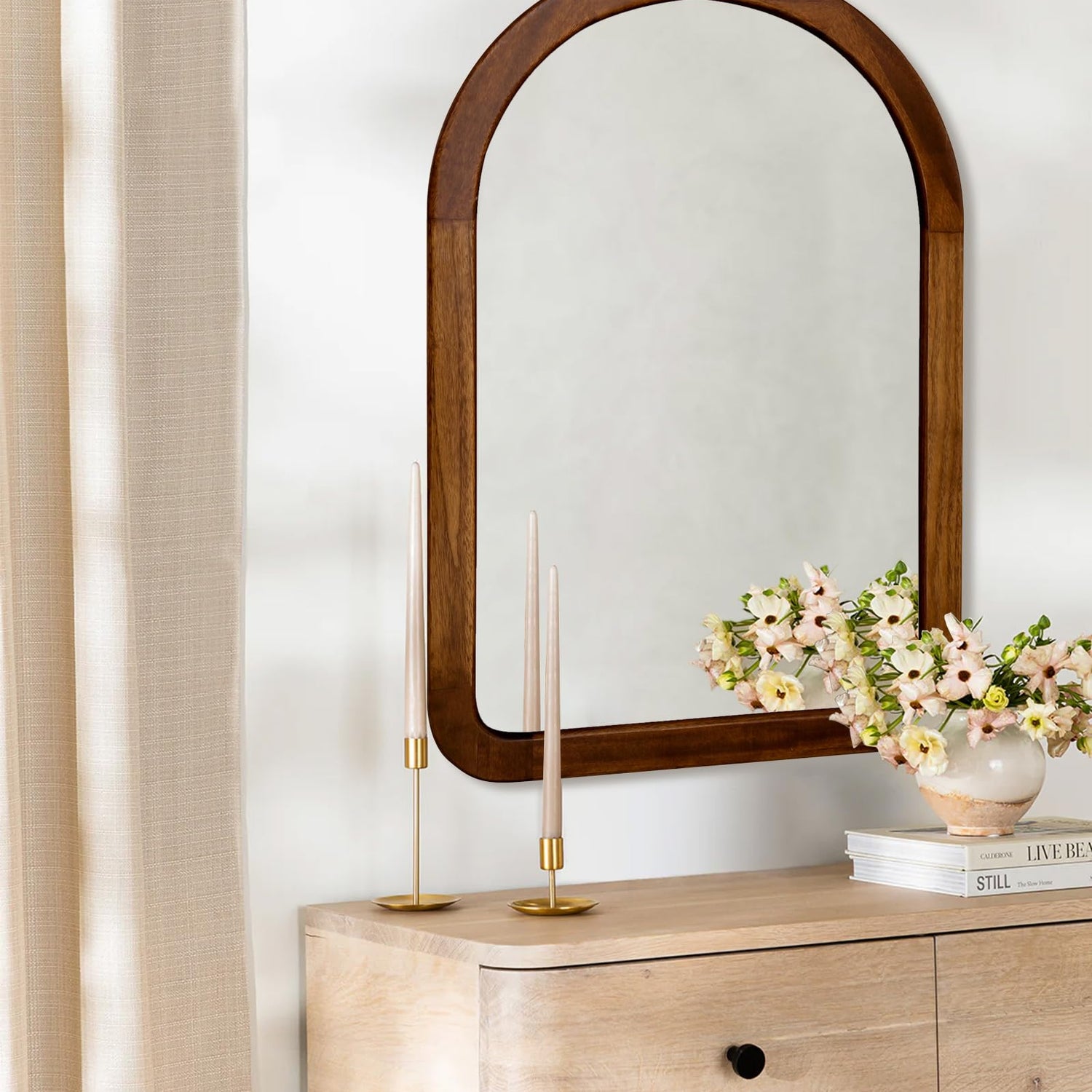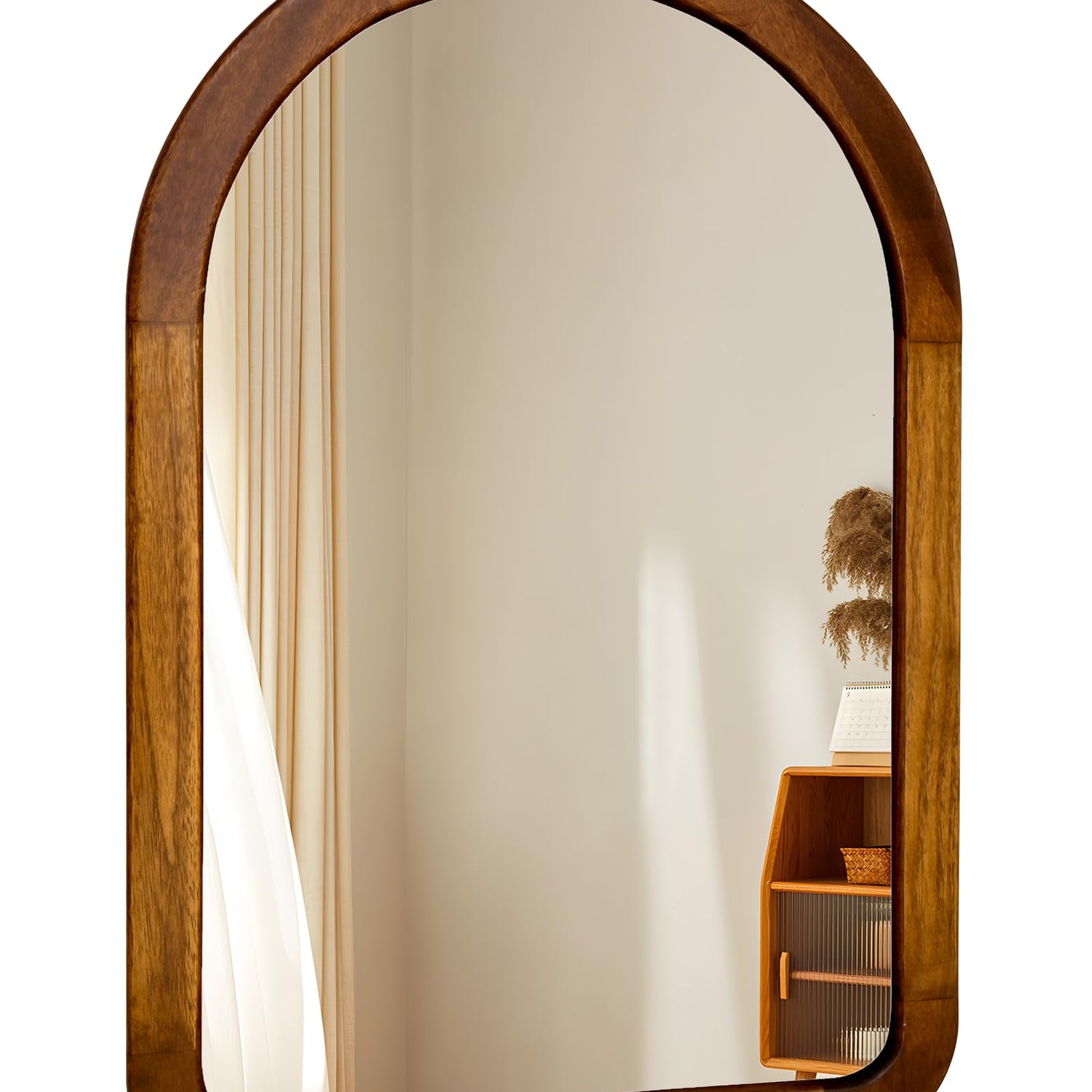 Arched Mirror 22 x 30 Inch,Brown Wood Rustic Bathroom Tempered Wall Mirror with Wood Frame,Round Corner Arch Farmhouse Wooden Vanity Mirror for Living Room,Entryway or Bedroom(Walnut Brown)