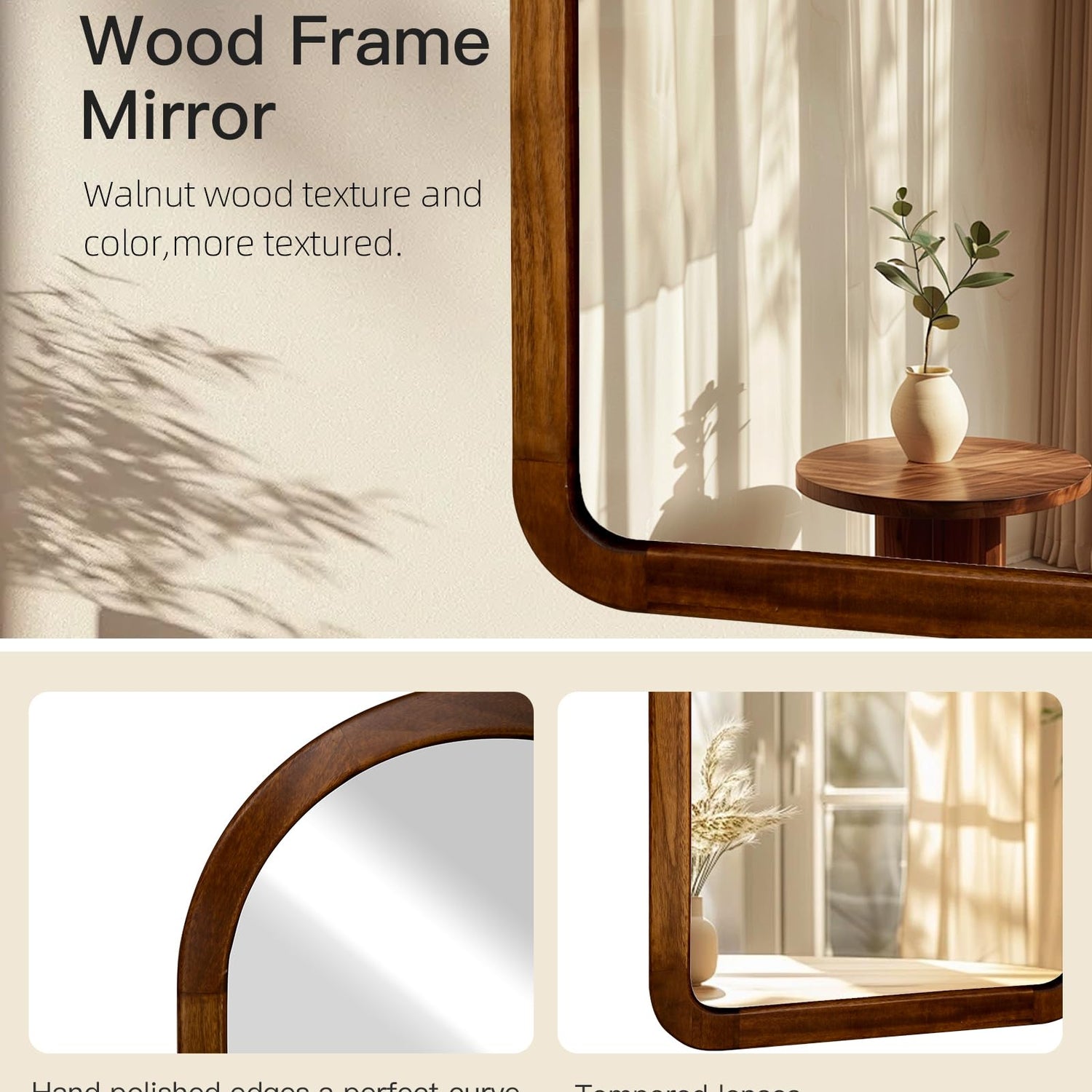 - [HIGH-QUALITYT]The rustic wall mirror is made of tempered glass and walnut wood, which makes it free from any sort of distortion and provides a clear reflection. shockproof.The most importantbenefit of tempered glass is more safetythan others.and another benefit oftempered glass is its strength.it is hard to shatter.
