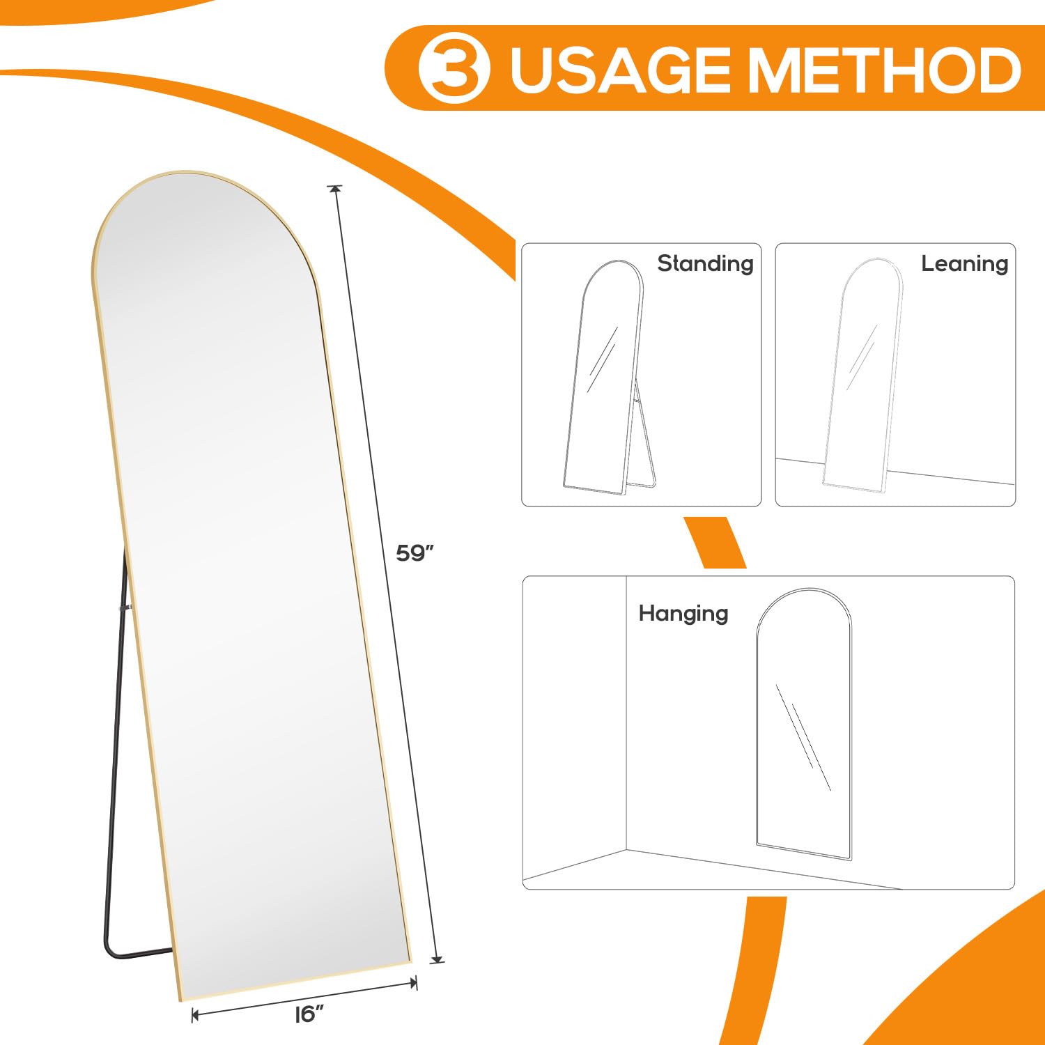 Arched Mirror Full Length, Upgraded 16"x59" Body Wall Mirrors with Shatter-Proof Glass, Floor Standing, Hanging or Leaning, Tall Arch Mirror with Stand Aluminum Alloy Frame for Bedroom Cloakroom