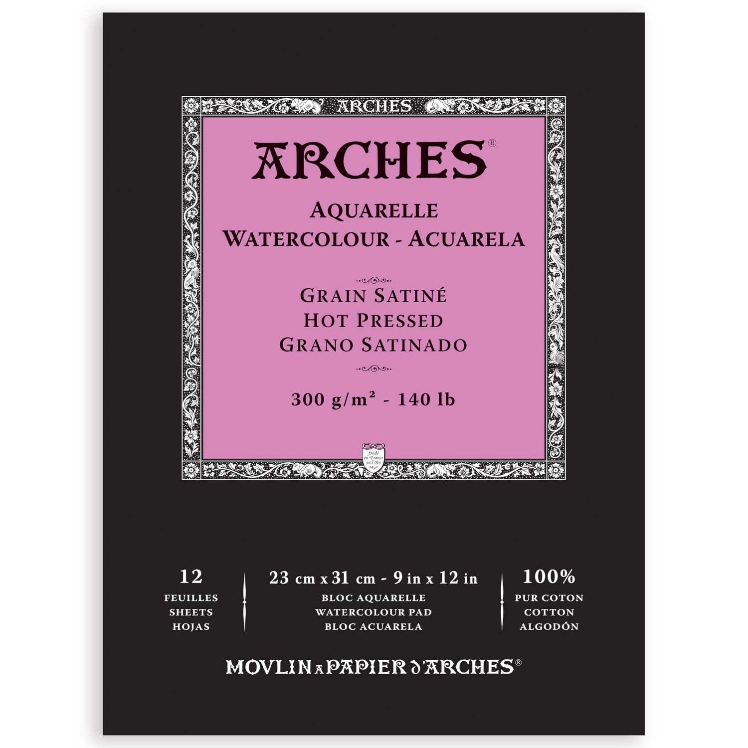 Arches Aquarelle Watercolor Pad, Hot Pressed, 140lb/300gsm, 12 Sheet, 9x12 inch, Arches Watercolor Paper 100% Cotton