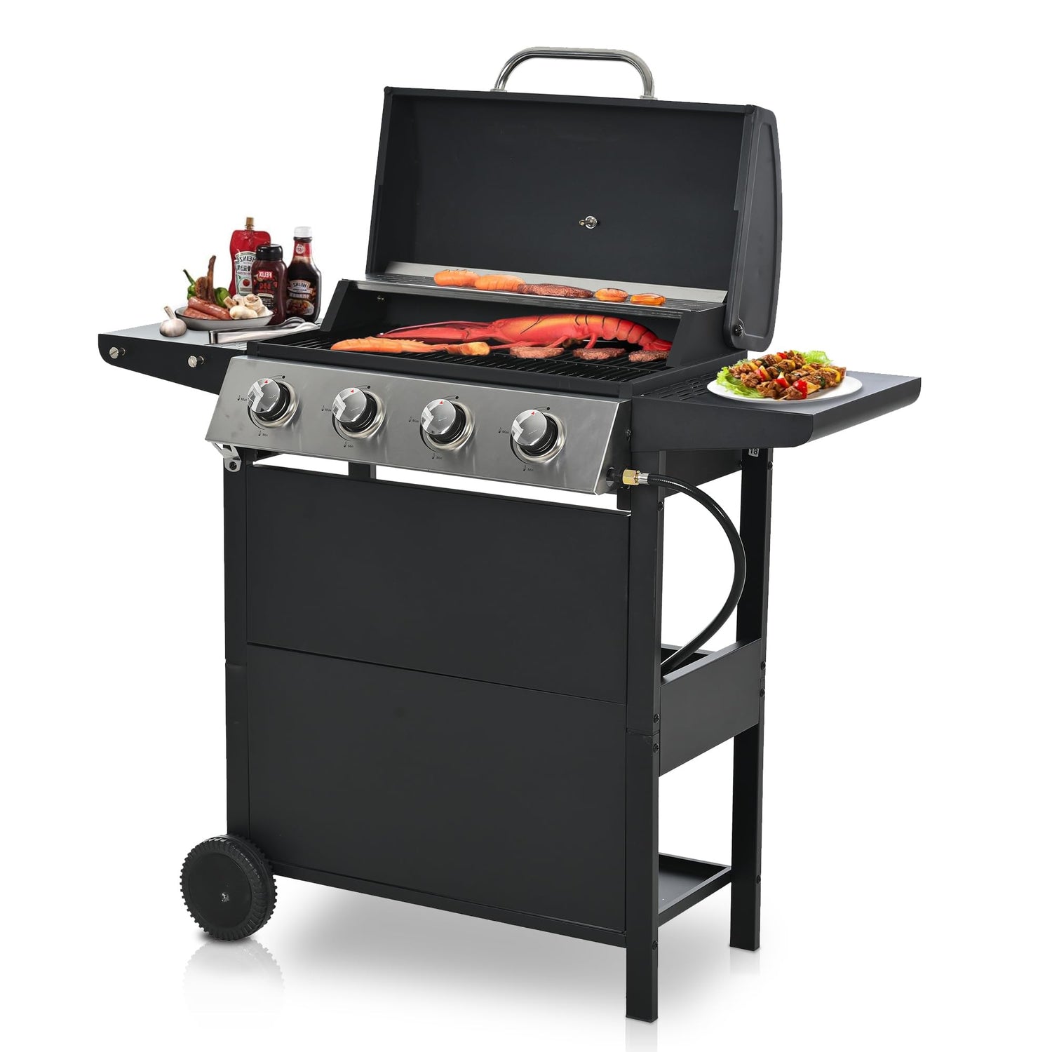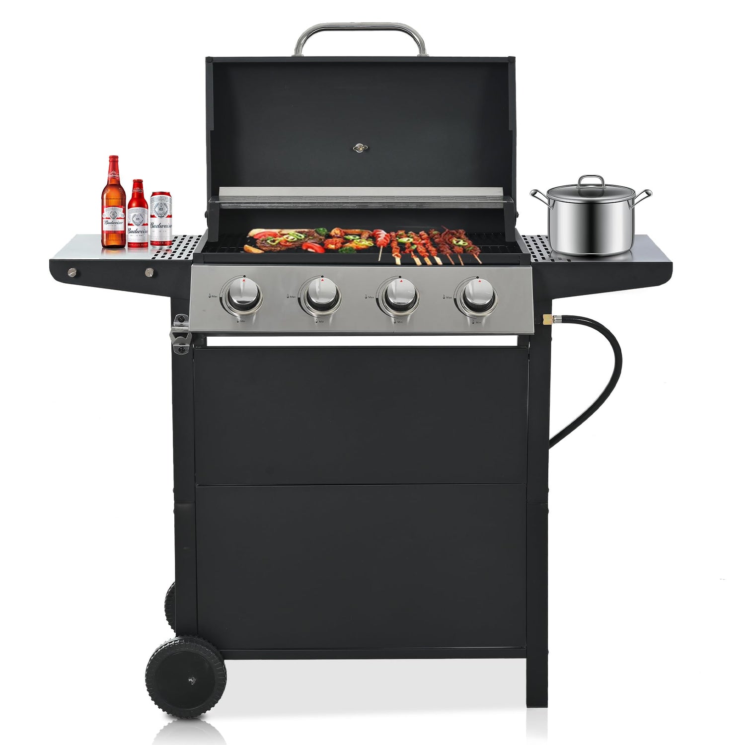 - ❤️🔥[STAINLESS STEEL 4 BURNERS] - This propane grills has 4 Stainless Steel burners, can put out 34,200 BTU-per-hour with integrated piezoelectric ignition system, quick start up with the push &turn of a control knob.