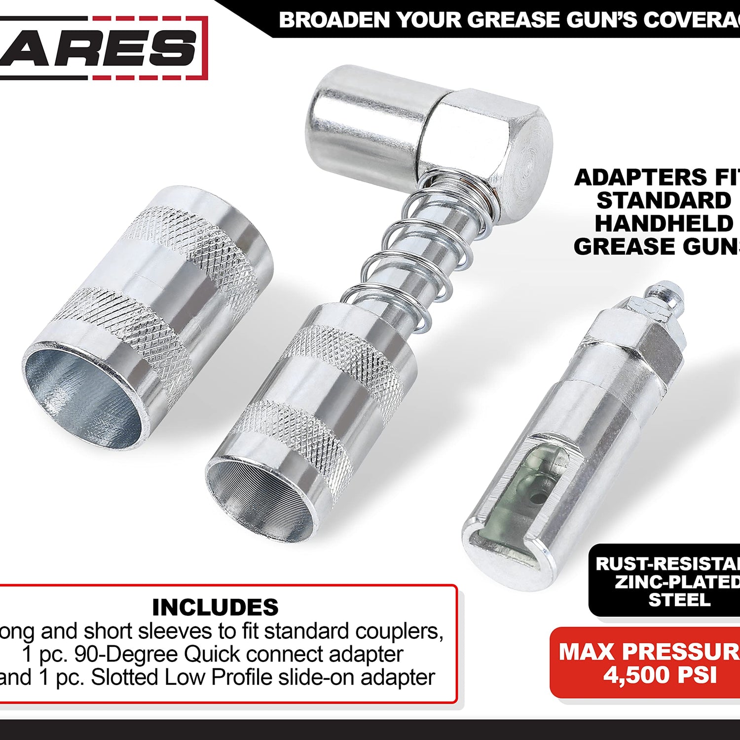 - RELIABLE | EFFECTIVE | EFFICIENT: Users trust ARES to be quality tools. You are backed by our Performance Assurance. If you have any issues with your ARES Grease Gun Adapter Set, simply contact customer service for troubleshooting help, parts, replacement, or refund.