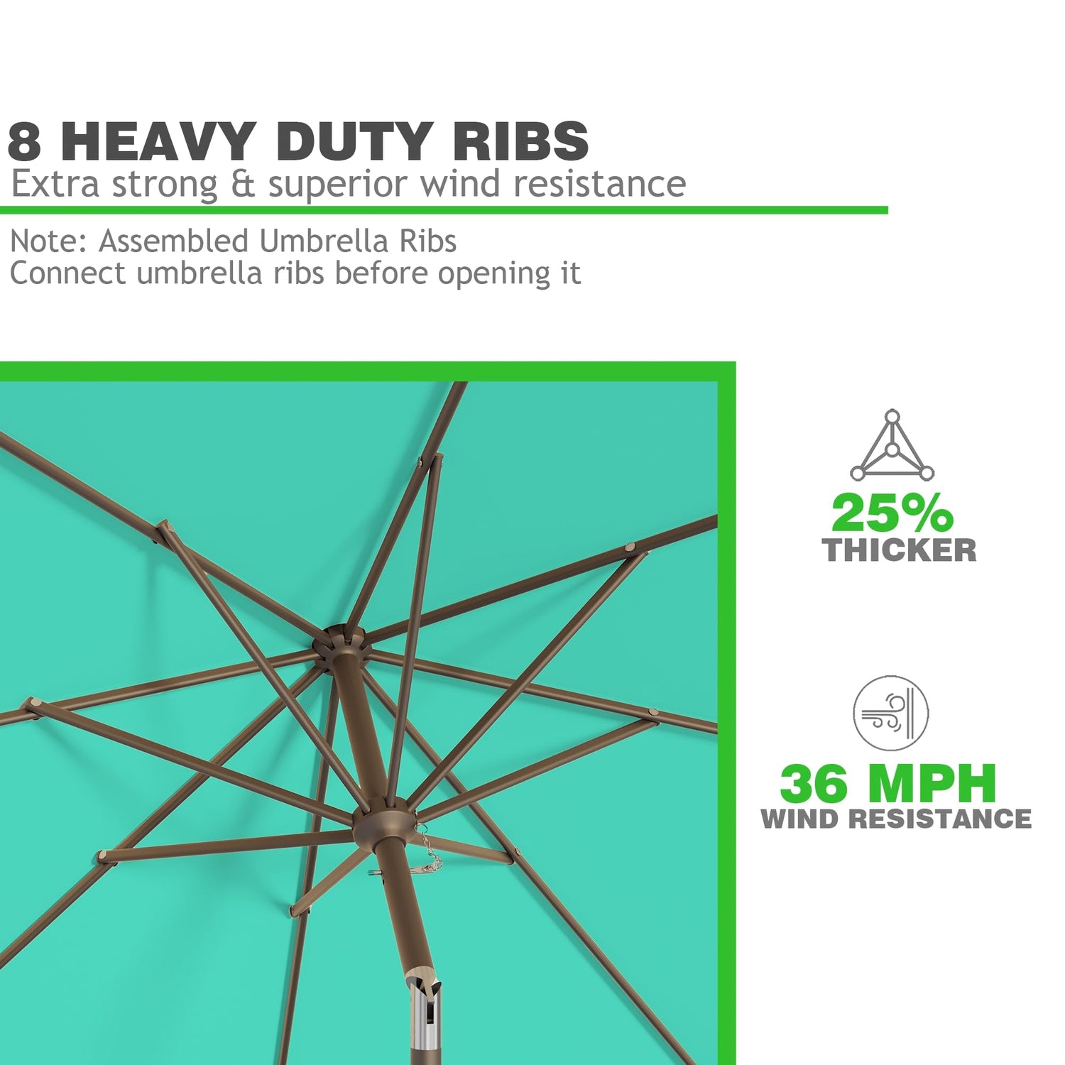 - Sturdy & Durable: This market umbrella is designed with crank open system for easy and quick use. The entire structure of yard umbrella is made of sturdy iron material. Powder coated iron pole and 8 sturdy ribs provides stronger support and are built for stability