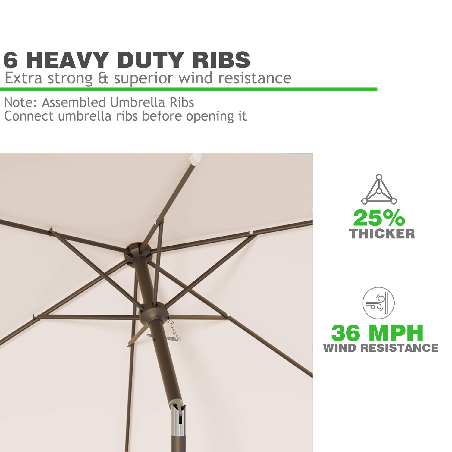 - Sturdy & Durable: This market umbrella is designed with crank open system for easy and quick use. The entire structure of yard umbrella is made of sturdy iron material. Powder coated iron pole and 8 sturdy ribs provides stronger support and are built for stability