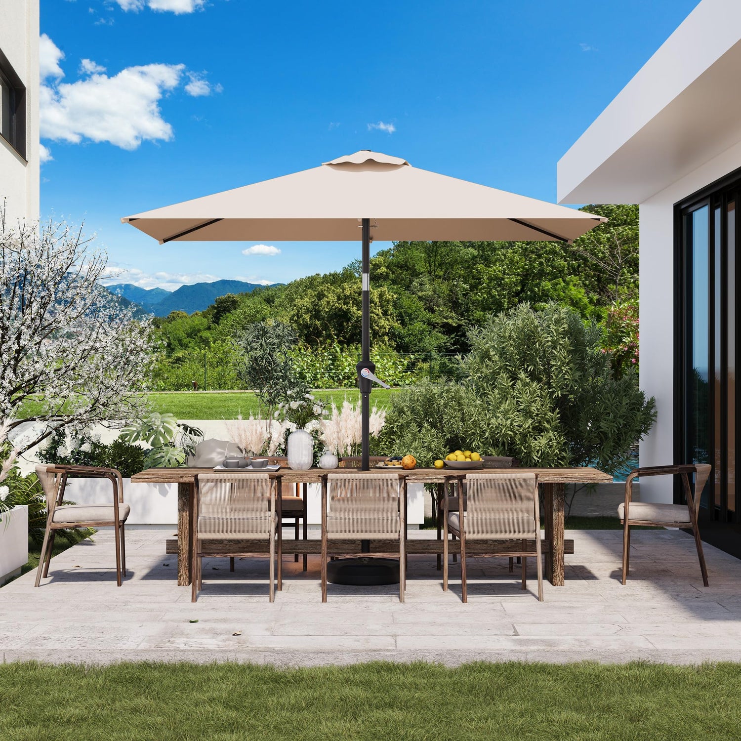 AreShark 6.5' x 10' Rectangular Patio Umbrellas for Outdoor, Outdoor Table Umbrella, Large Outdoor Patio Umbrellas with 6 Sturdy Ribs, Patio Umbrellas for Market, Garden, Pool (Beige)