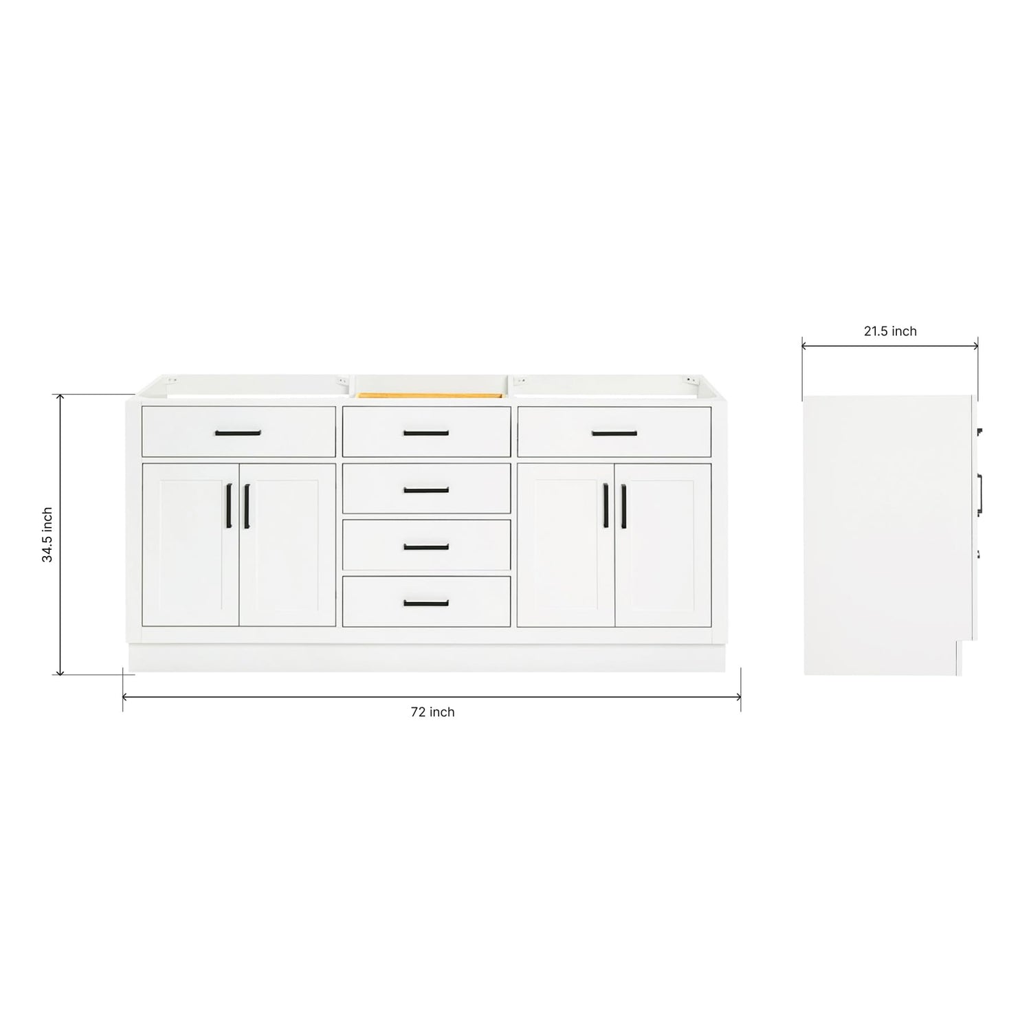 ARIEL Double Bathroom Vanity Base Cabinet 72" White, Double Sink Configuration, 4 Soft Closing Doors, 6 Full Extension Dovetail Drawers, Toe Kick, Matte Black
