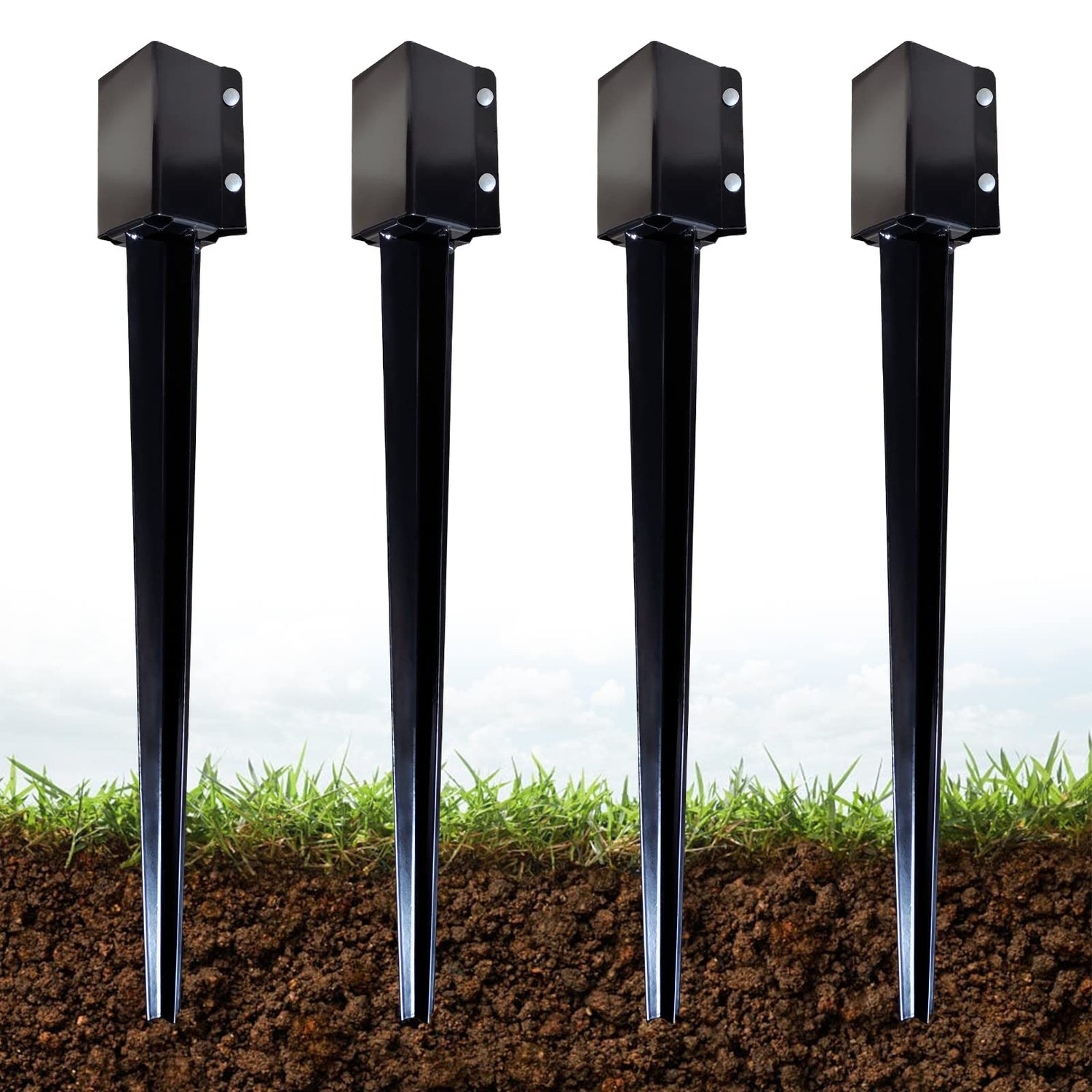 ARIFARO Fence Post Anchor 36 inch Ground Spike Heavy Duty Metal Black Powder Coated Fence Stakes Post,4x4 inch(3.5 x3.5 inch inner) Pack of 4