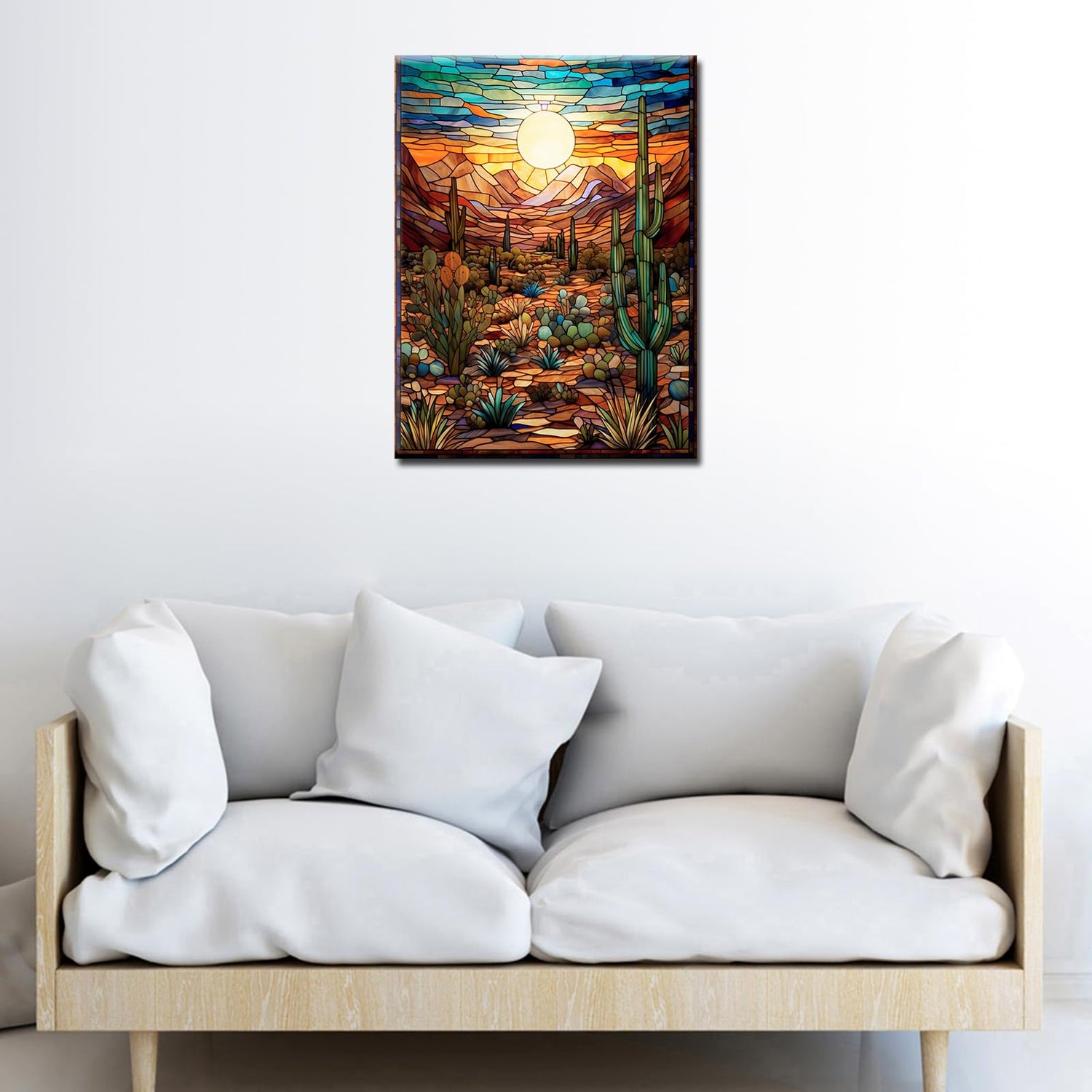 Arizona Desert Diamond Painting DIY 5D, Numbering Kit, Native America Crystal Rhinestone Diamond Painting Mountain Landscape Pictures Cacti Plants Artwork Home Decor Adults Gift(12''Wx 16''H)
