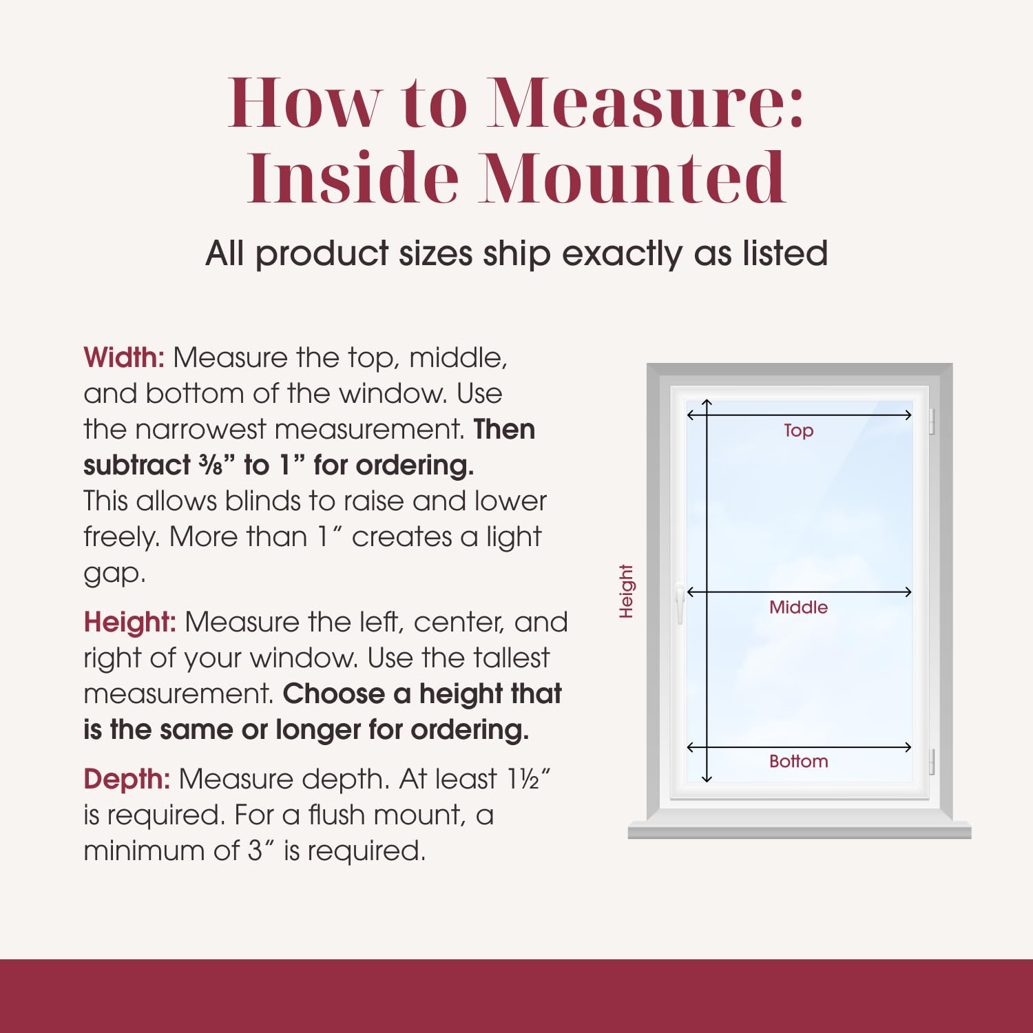 - The perfect fit made easy - Installation off your window blinds is easy with all necessary hardware and simple instructions included. For an outside mount, we recommend adding 2-6 inches to your window's height and width for light control and privacy. If you aren’t sure about the size or color, we recommend ordering one item as a test to reduce potential return expenses. In addition we are happy to answer any questions to help you feel confident in your choice.