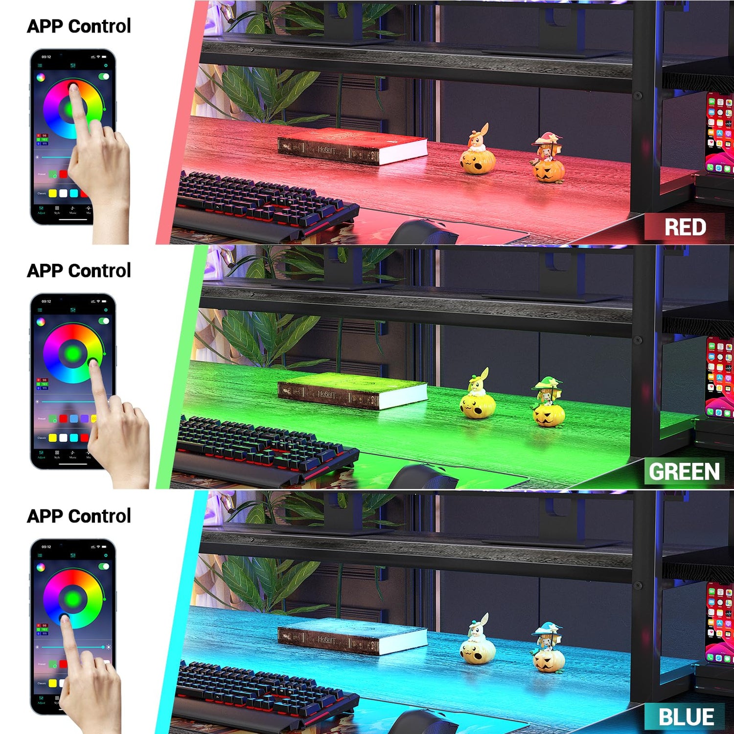 - Desk with LED Light - Armocity small computer gaming desk has a long led stripe under the monitor stand, you can control the light by uploading an app or using the remote. so you can use mobile app control or RF remote control, It is a magic desk when you turn on the light, your world will be full of colorful light.