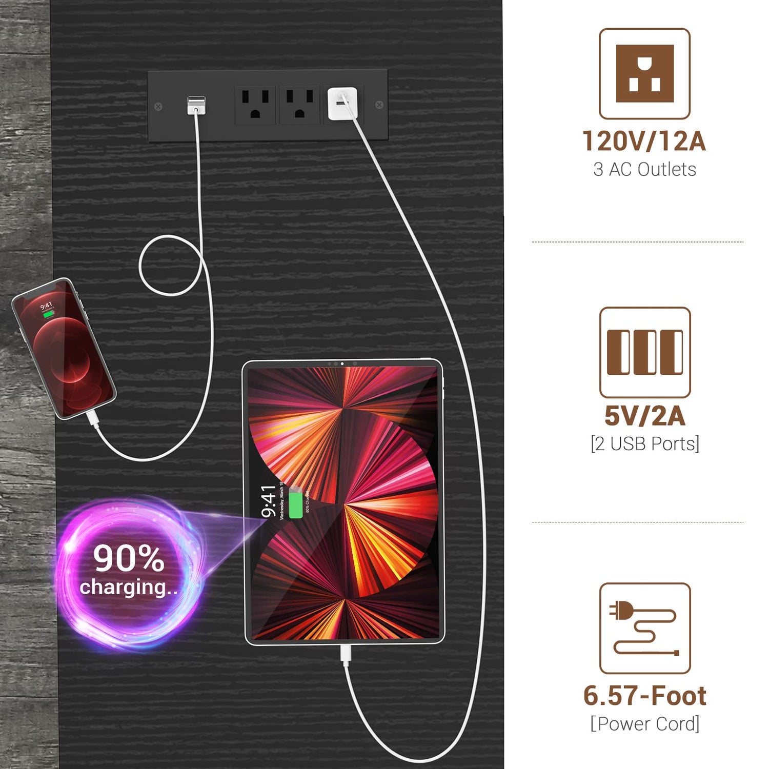 - Desk with USB Charging Station & Power Outlets - Armocity computer desk comes with 3 outlets and 2 USB ports for your table lamp, pad, phone, audio equipment, pc monitor and gaming gear with fast charging, you don't need to add an additional charger. The length of the cable is 6.57FT long.