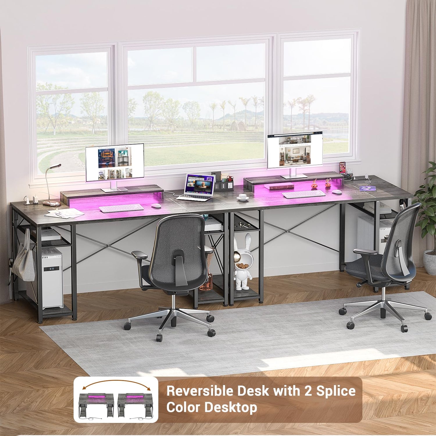 - Reversible Charging Sation Design - This large computer gaming desk with a reversible design, you can put the small grey desktop on the right or left. So the charging port can be left or right.