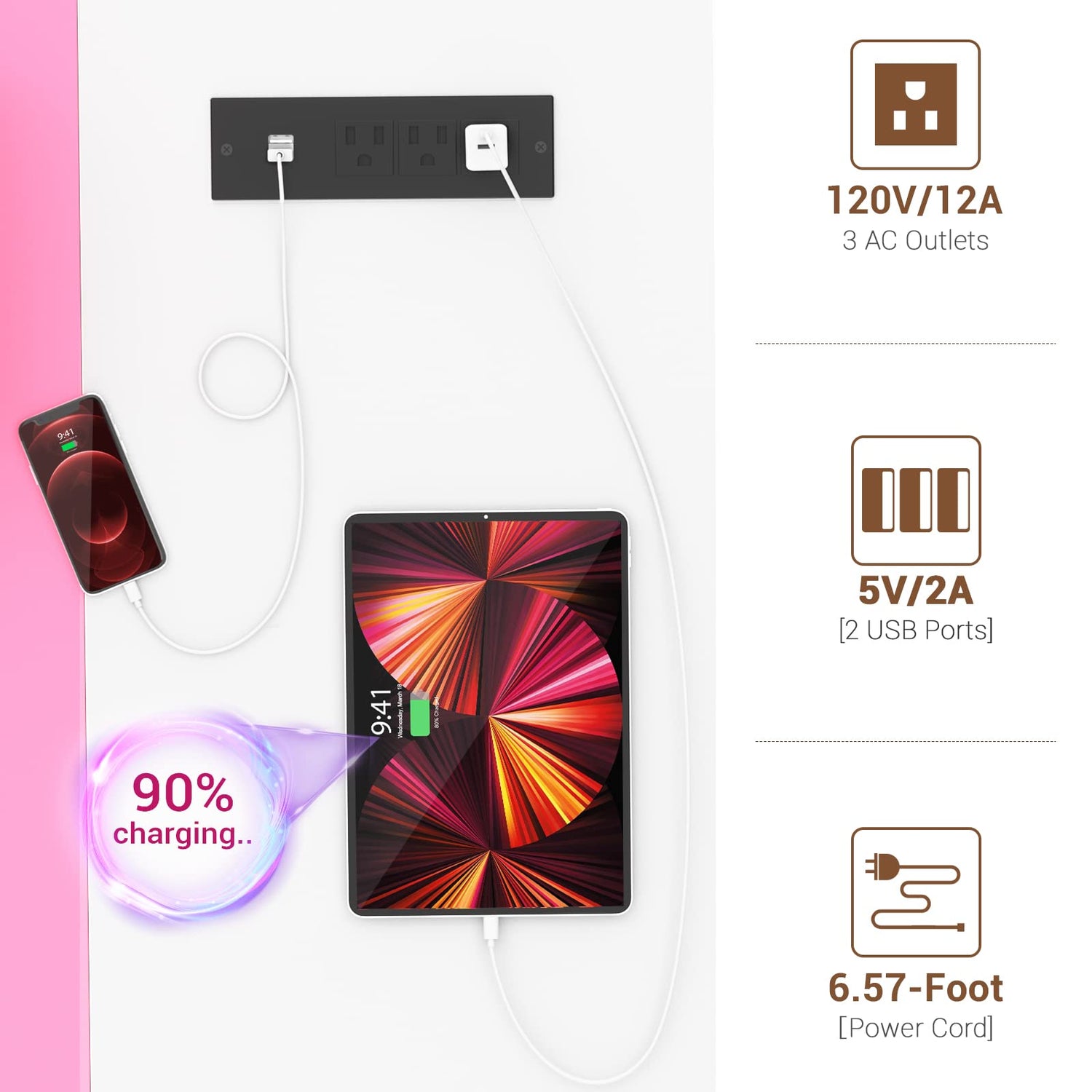 - Desk with LED Lights & USB Charging Station & Power Outlets - Armocity computer desk comes with 3 outlets and 2 USB ports for your table lamp, pad, phone, audio equipment, pc monitor, and gaming gear with fast charging, you don't need to add an additional charger. You can just plug the wire of the LED light into the USB, which will surely delight your room space. The length of the cable is 6.57FT long.
