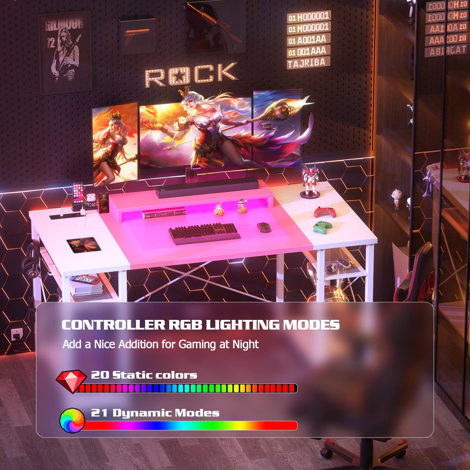 - Reversible Charging Sation Design - This large computer gaming desk with a reversible design, you can put the small white desktop on the right or left. So the charging port can be left or right.