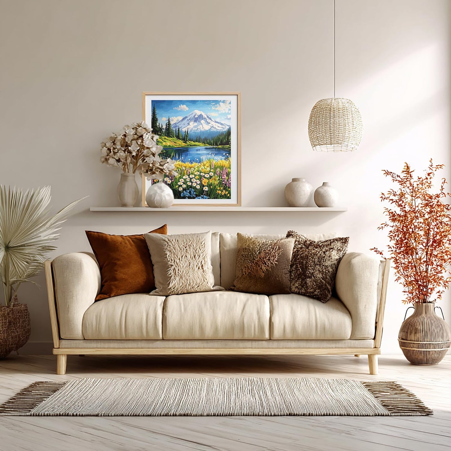 ARNLRDYA Paint by Numbers for Adults Mount Rainier National Park, Snow Mounta Forest Paint by Number Kits, Flowers Lake Scenery Acrylic Painting for Gift Home Wall Decor(16x20inches, Unframe)