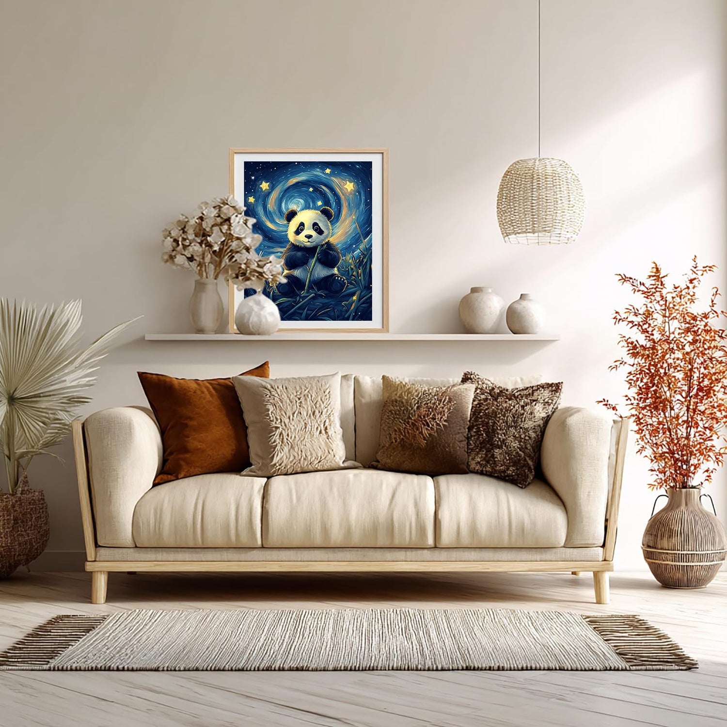 ARNLRDYA Panda Eating Bamboos Paint by Numbers for Adults, Starry Sky Van Gogh Paint by Number Kits, Cute Animals Stars Acrylic Painting for Home Decor(16×20inches, No Frame)